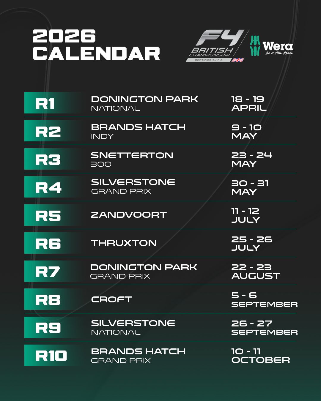 **يبدأ السباق هنا**، حيث تكشف بطولة الفورمولا 4 البريطانية لعام 2026، المعتمدة من الاتحاد الدولي للسيارات (FIA)، عن جدول من عشر جولات يشمل حلبات بريطانية شهيرة وجولة دولية خاصة في **زاندفورت**. يُ...