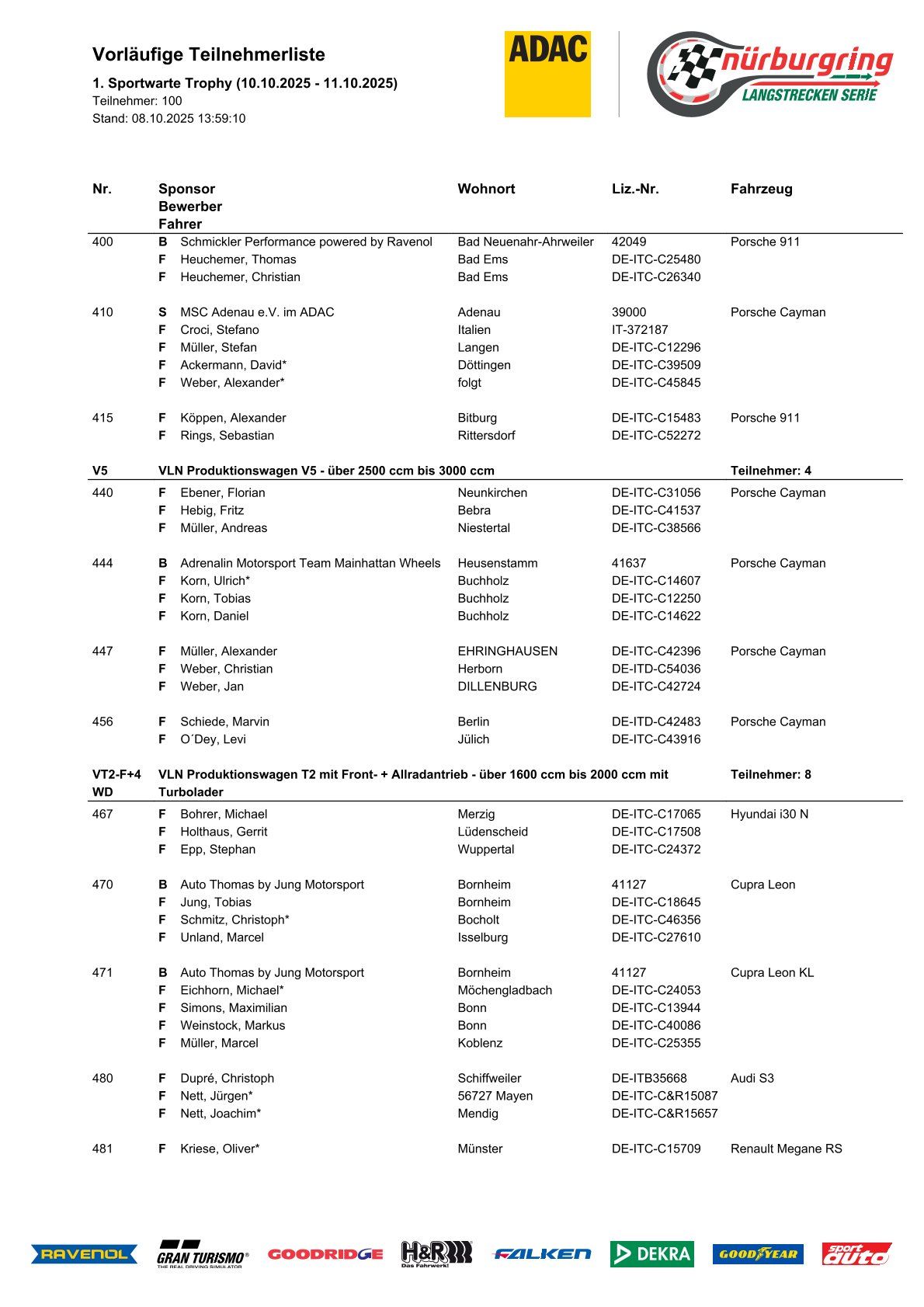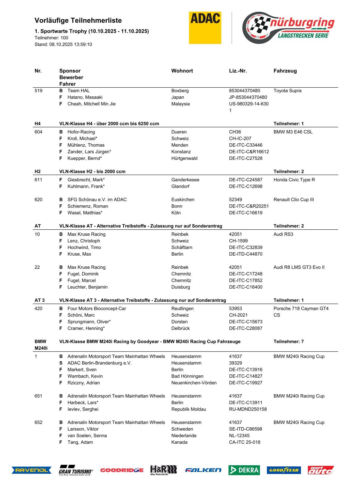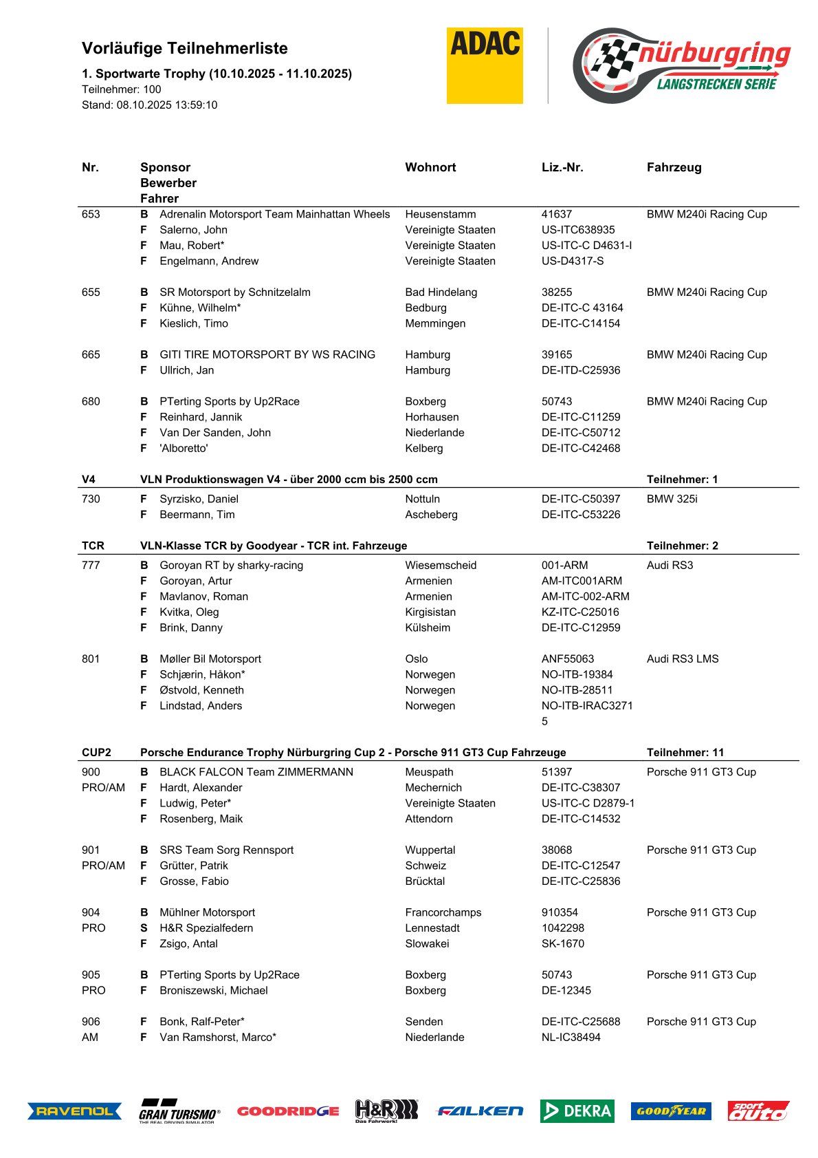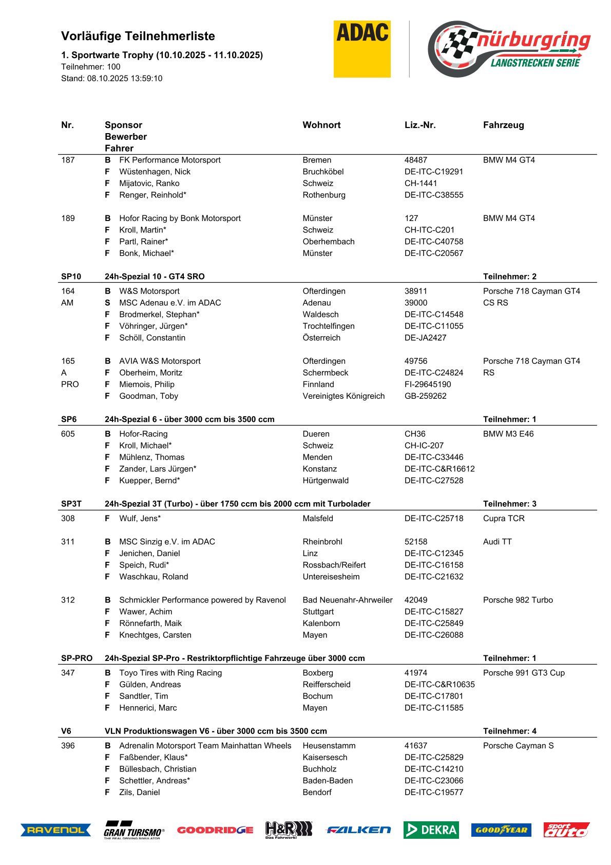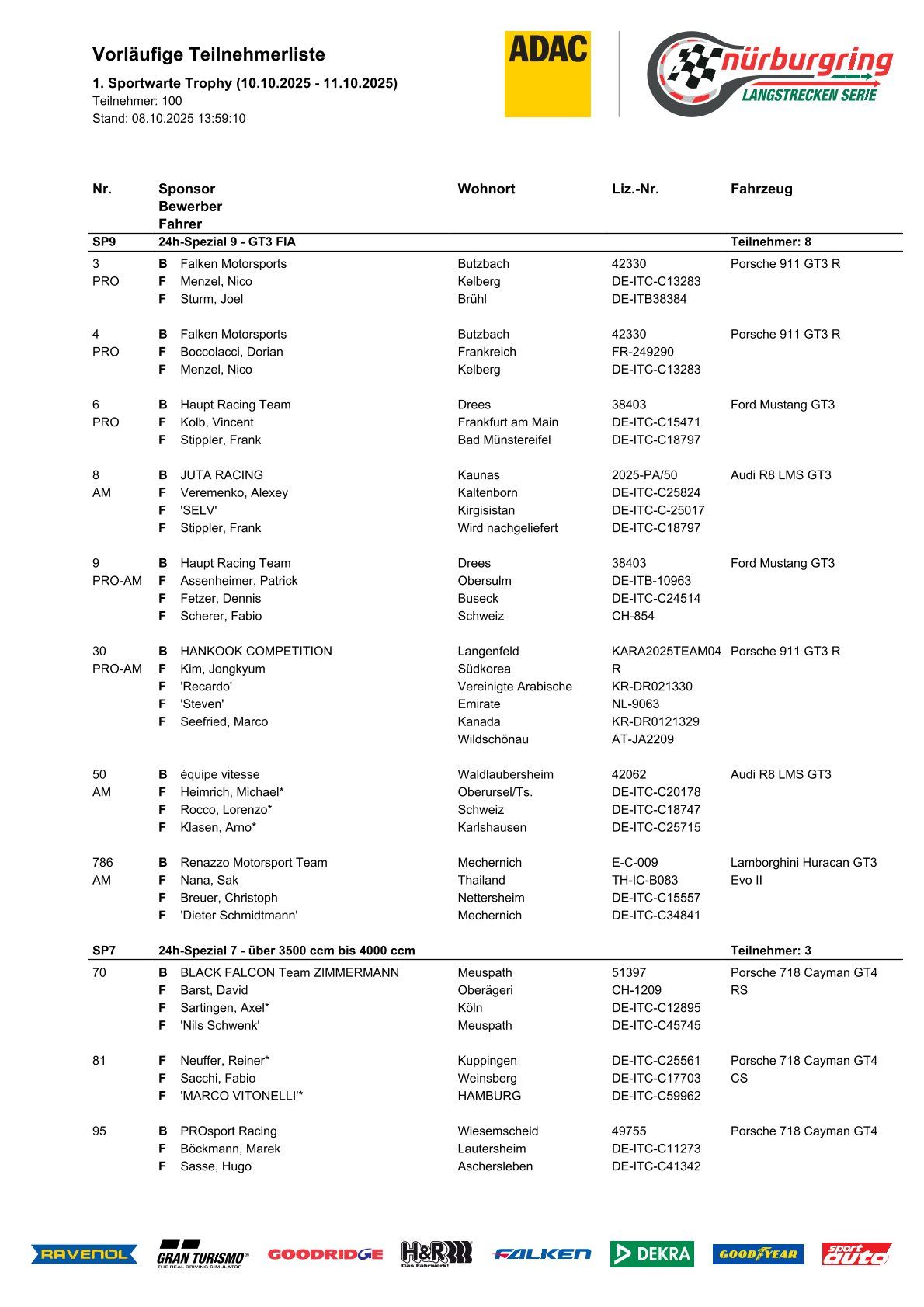 2025年Sportwarte Trophy NLS10官方参赛名单