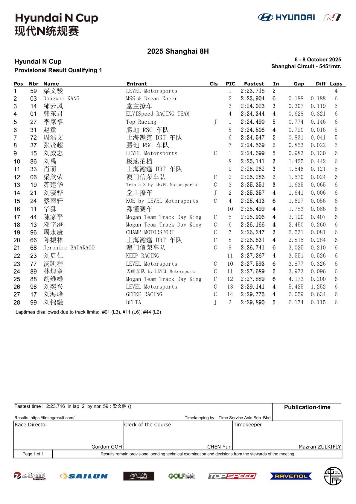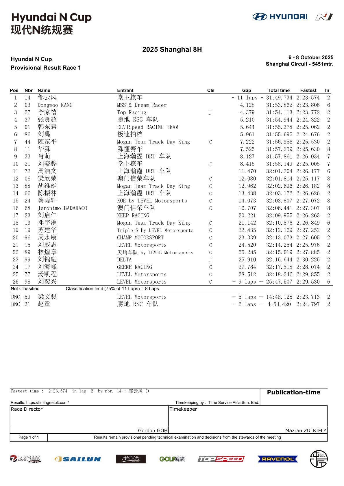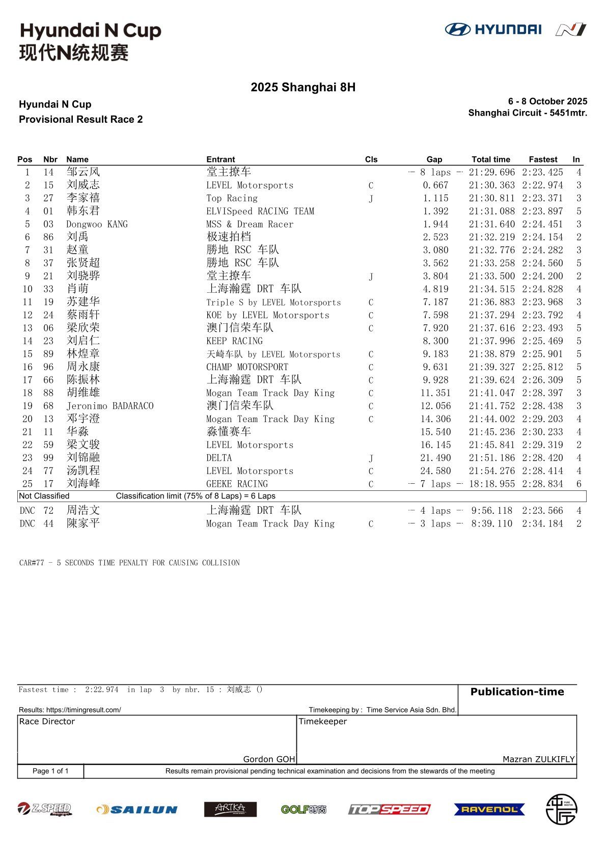 比赛成绩与积分排名 中国 上海国际赛车场 10月9日