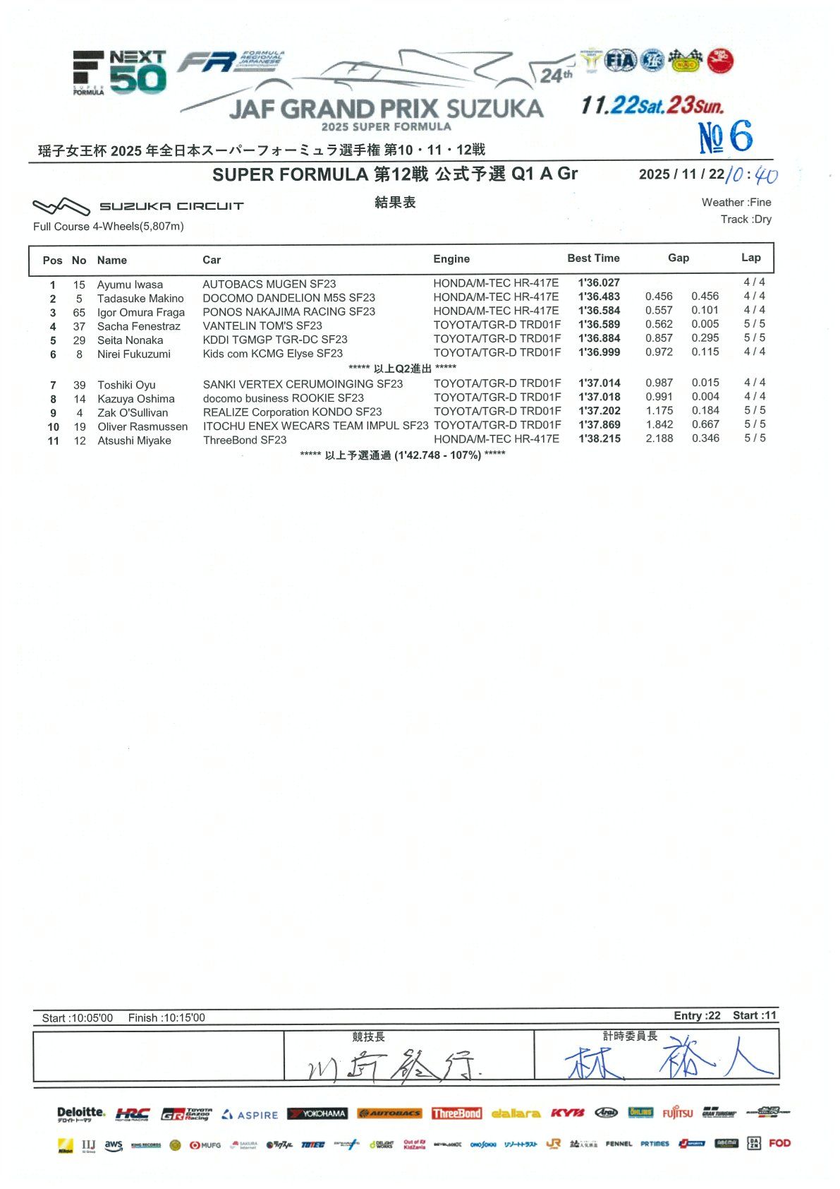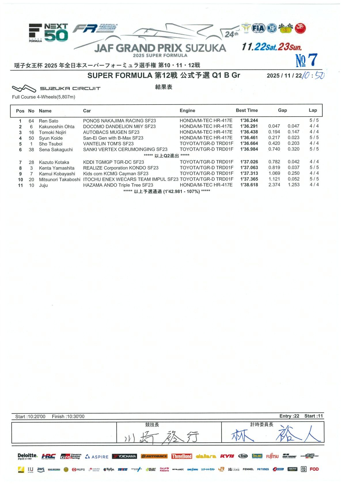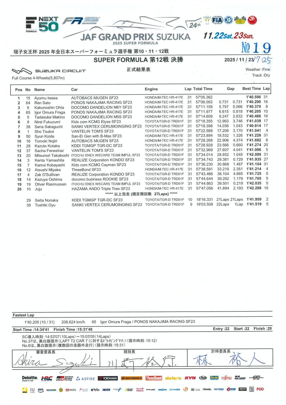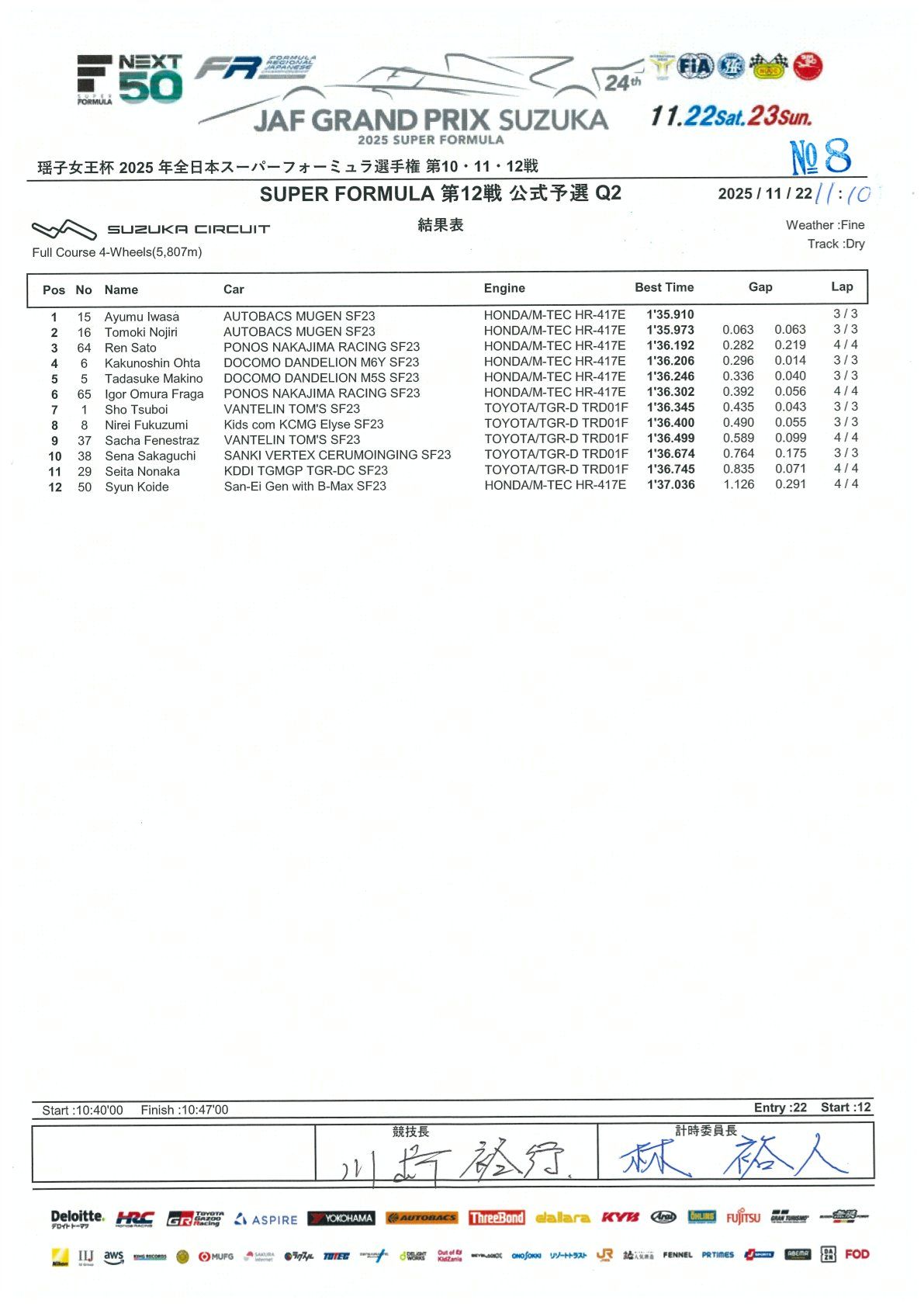 2025 SF - 超级方程式第 10 & 11 轮,第 12 轮结果