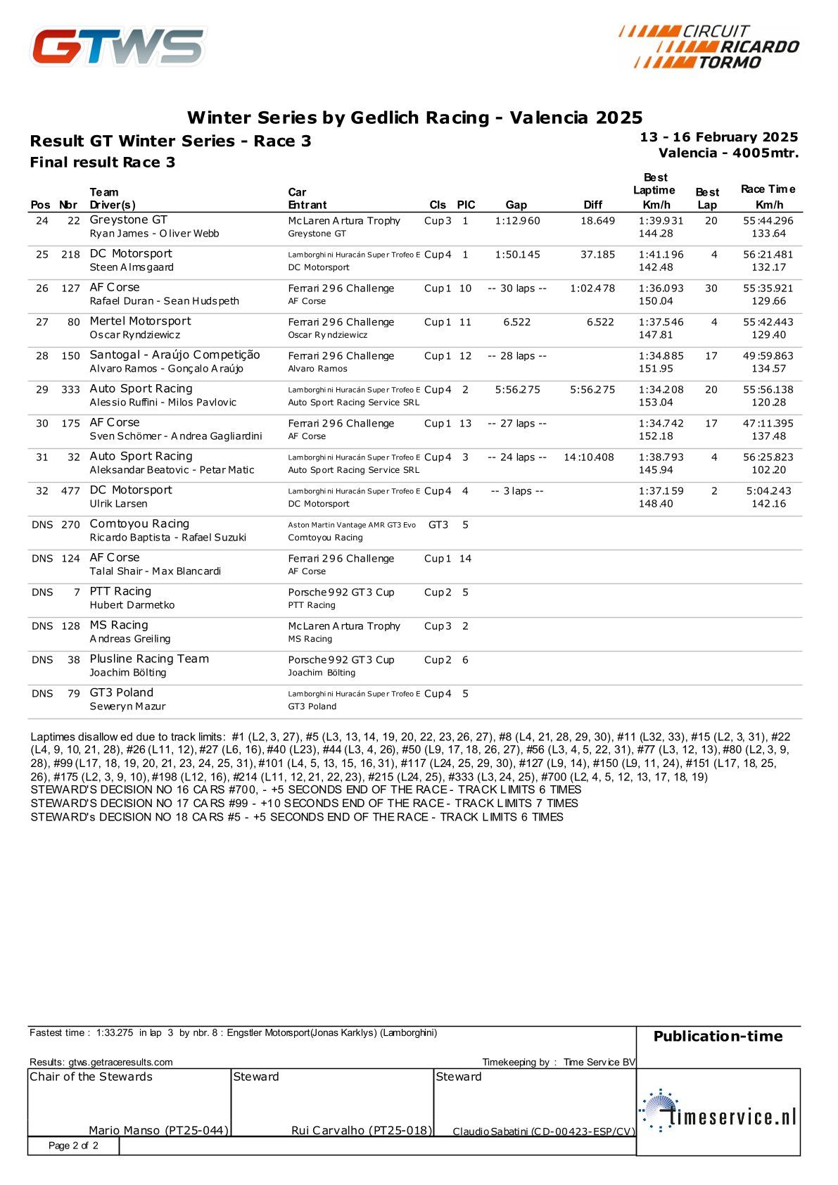2025 GTWS - GT 冬季系列赛 第三轮结果