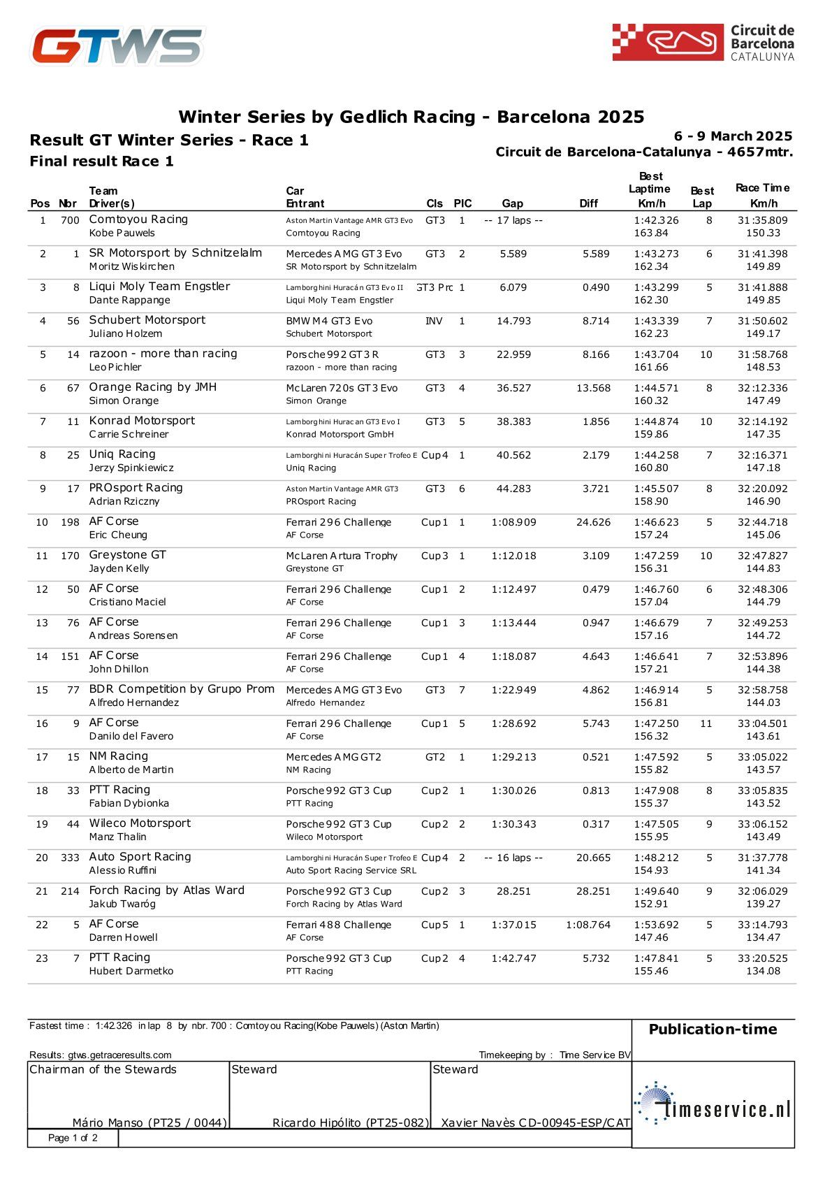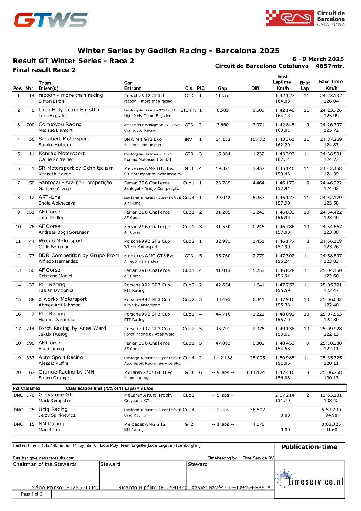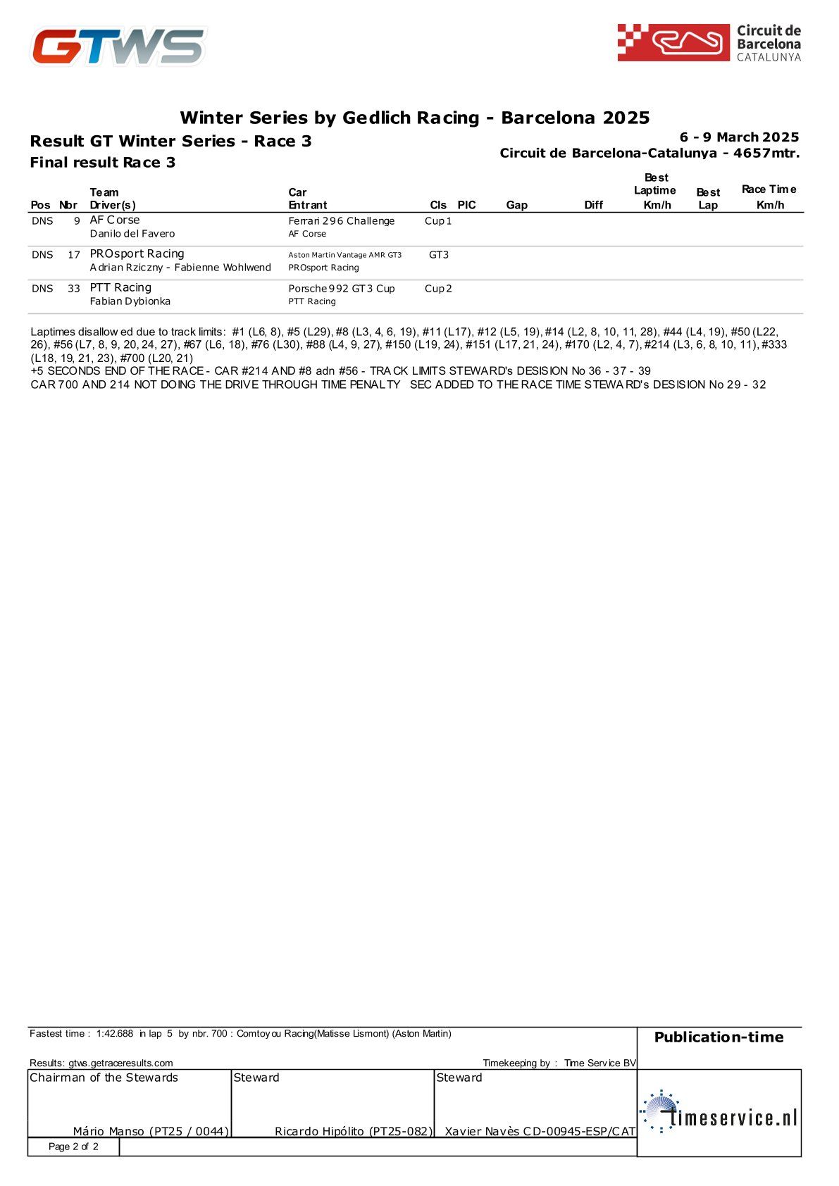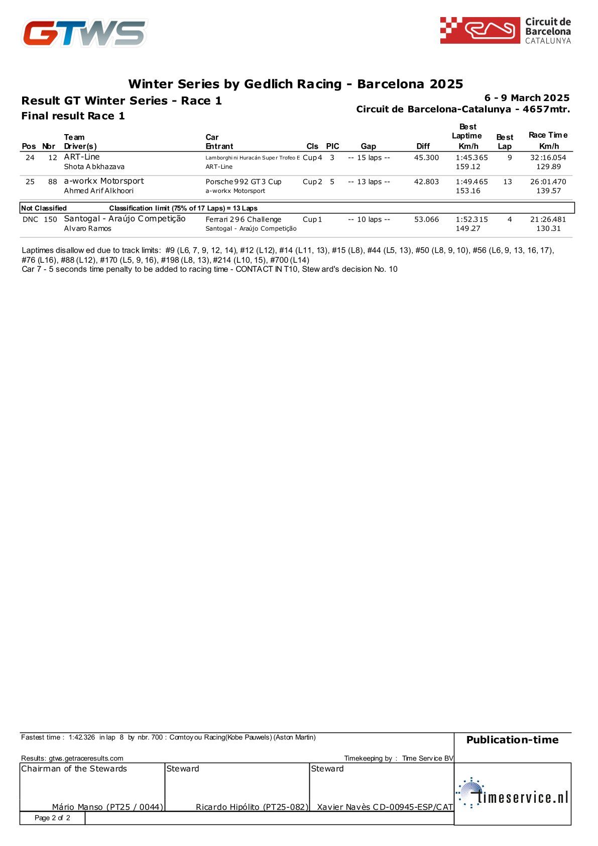 2025 GTWS - GT冬季系列赛 第5轮 结果
