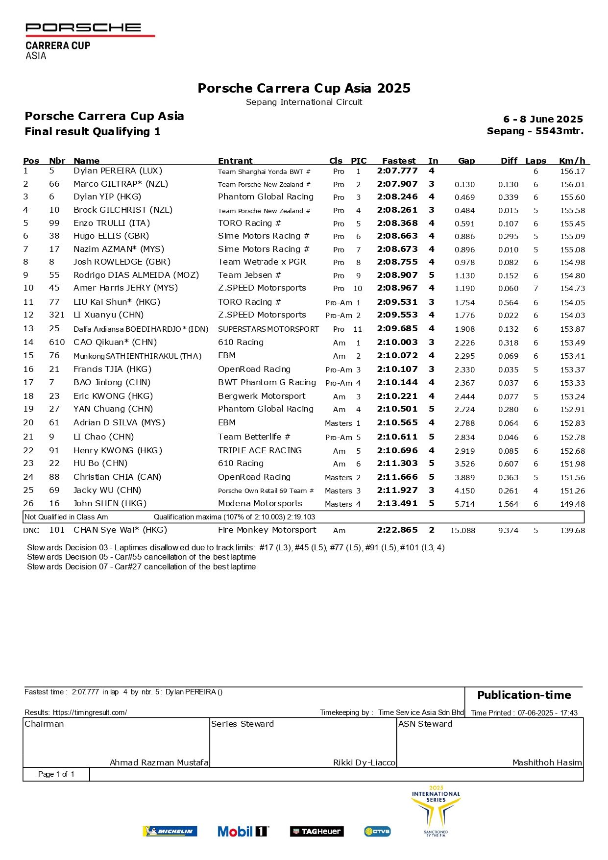 Závodní série: PCCA - Porsche Carrera Cup Asia Datum: 6. června 2025 - 8. června 2025 Okruh: Sepang International Circuit Kolo: R05/R06/R07 Název závodu: R05/R06/R07