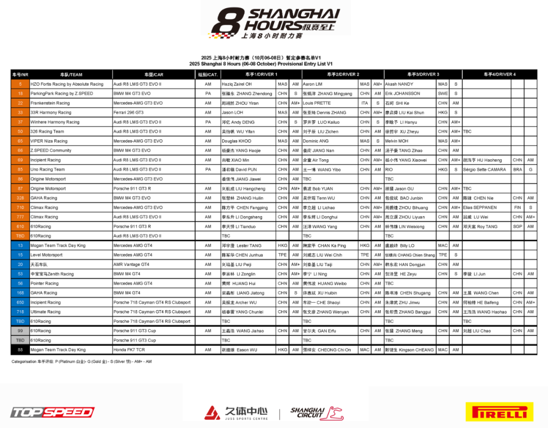 2025 Shanghai 8 Hours Endurance Race Provisional Entry List Announced: Team and Driver Introductions
