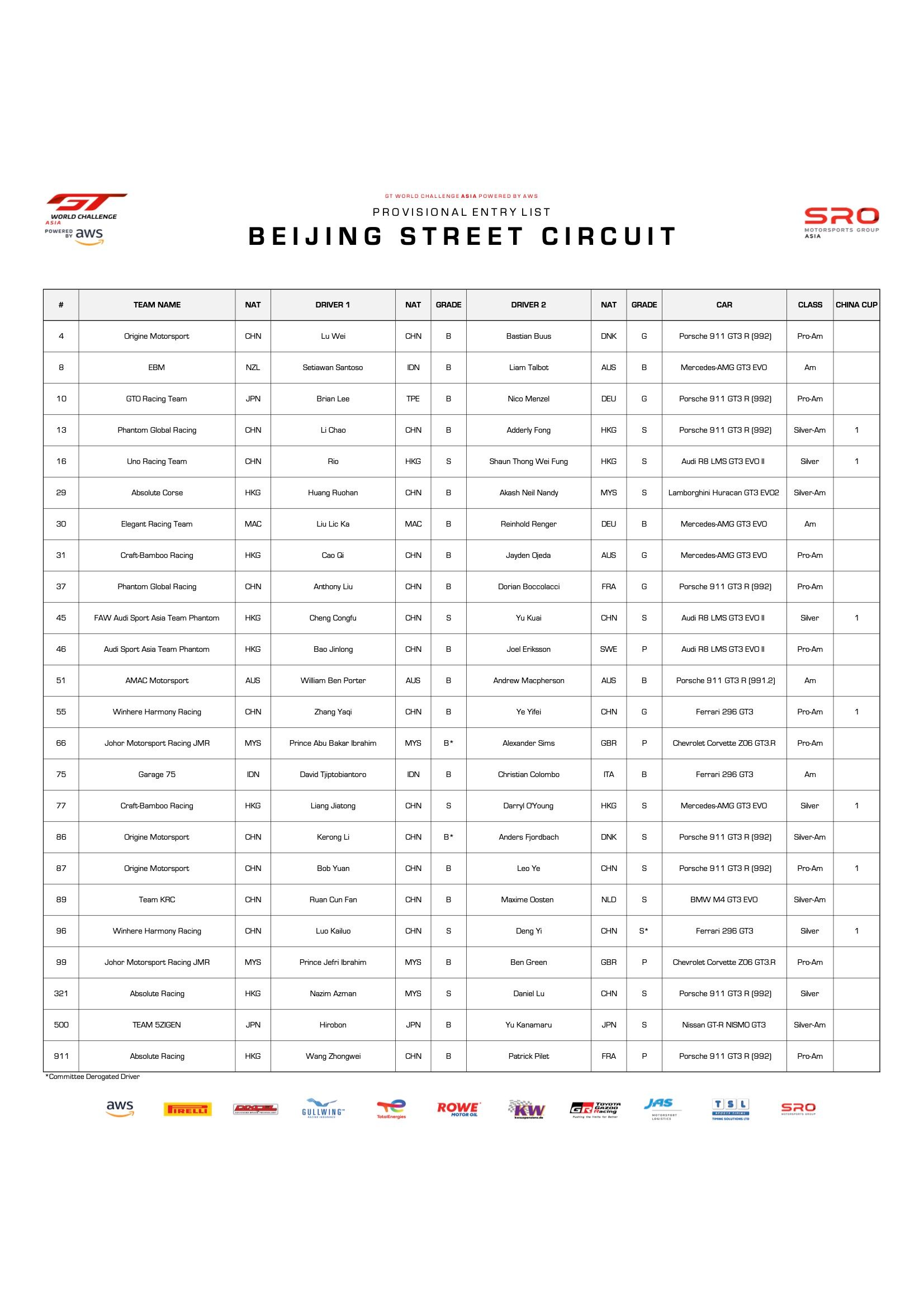 ELVISpeed RACING TEAM #01 Han Dongjun, Speed Partner #86 Liu Yu, Shengdi RSC Racing #21 Zhao Tong, Shengdi RSC Racing #37 Zhang Xianchao, Tangzhu Liaoche #21 Liu Xiaohua, Shanghai Hanting DRT Racing #33 Xiao Meng y MSS Dream Racer #03 Dongwoo Kang ocuparon los puestos del cuarto al décimo, respectivamente.