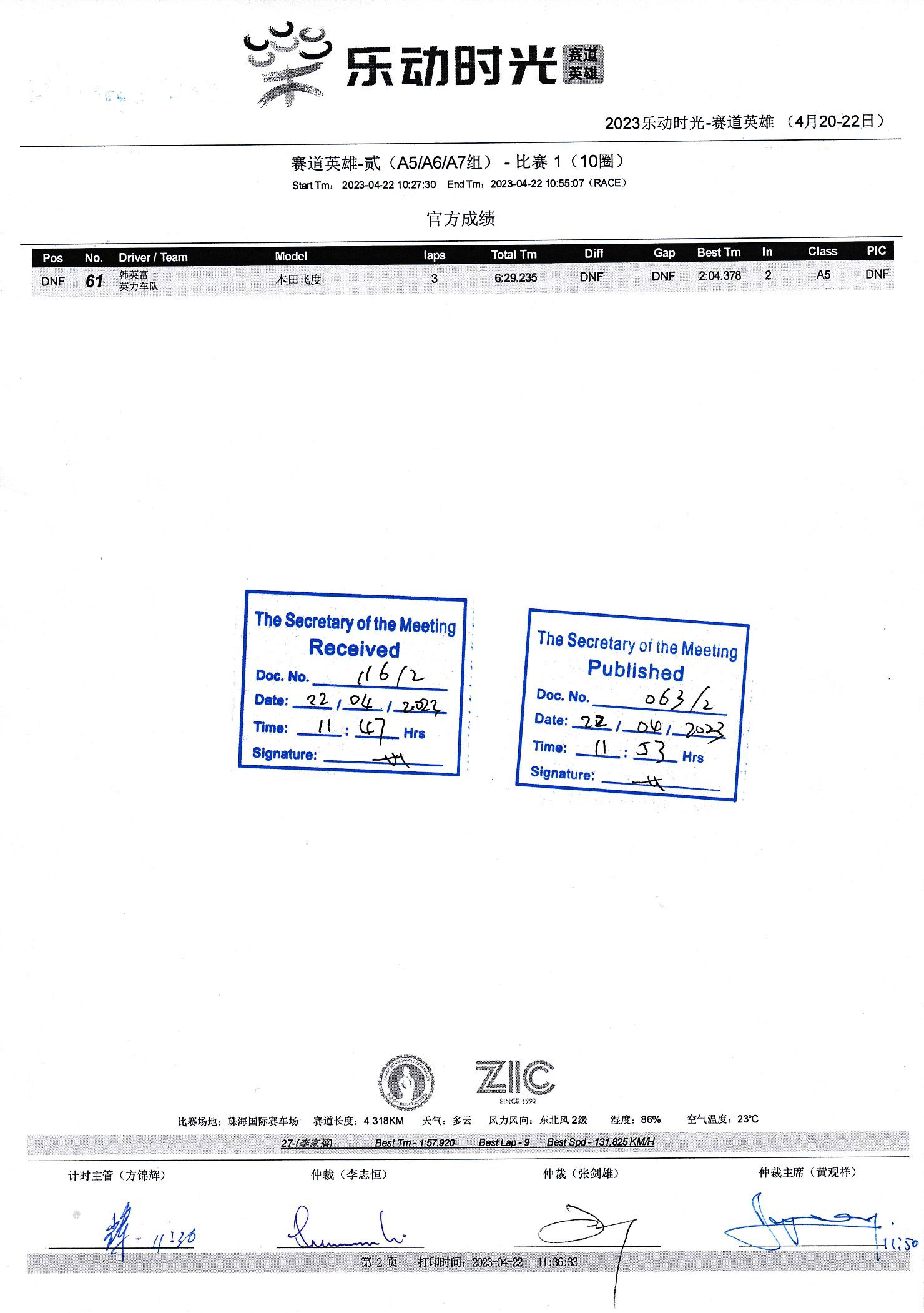 Kilpailutulokset Kiina Zhuhain kansainvälinen rata 23 huhtikuuta