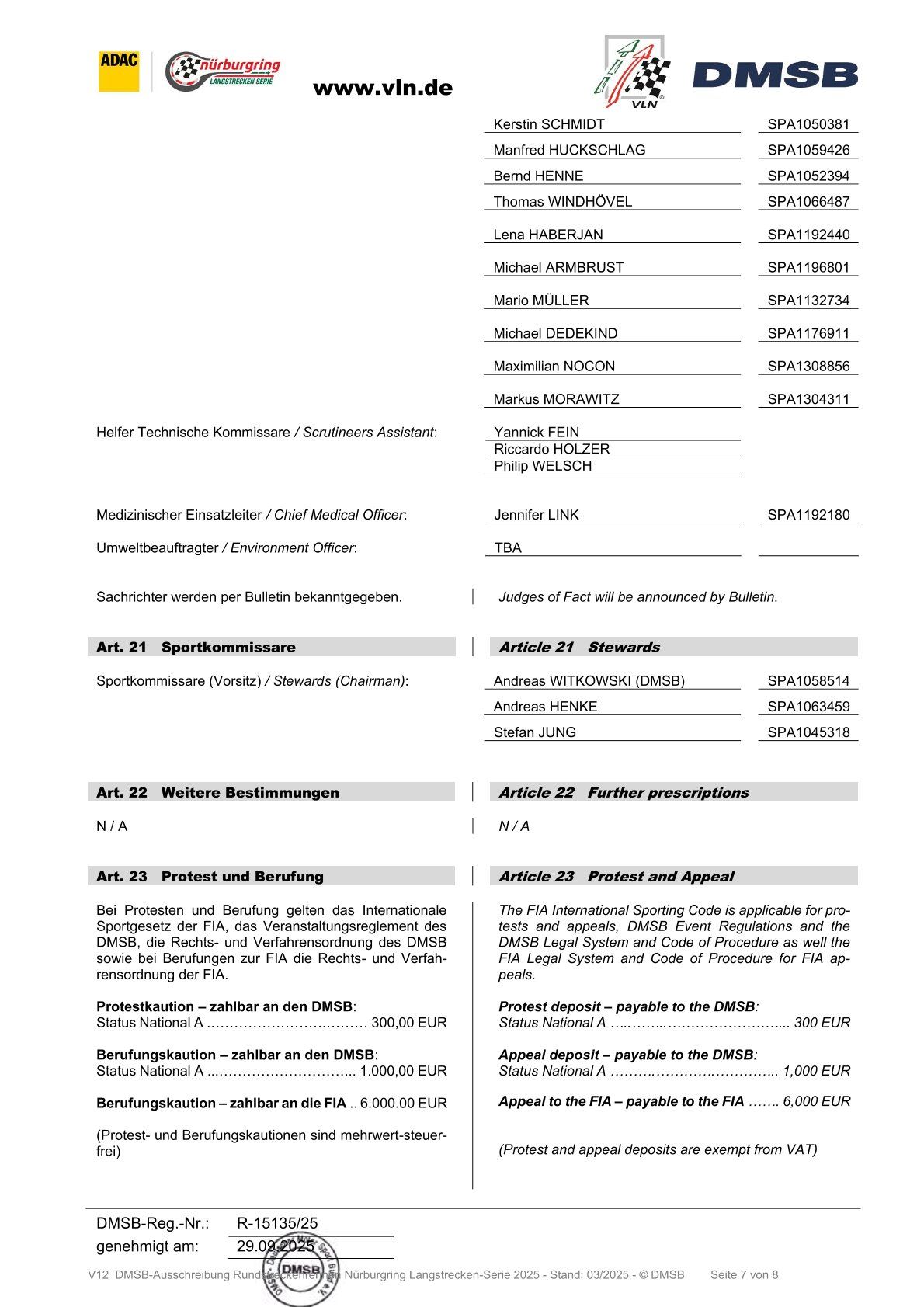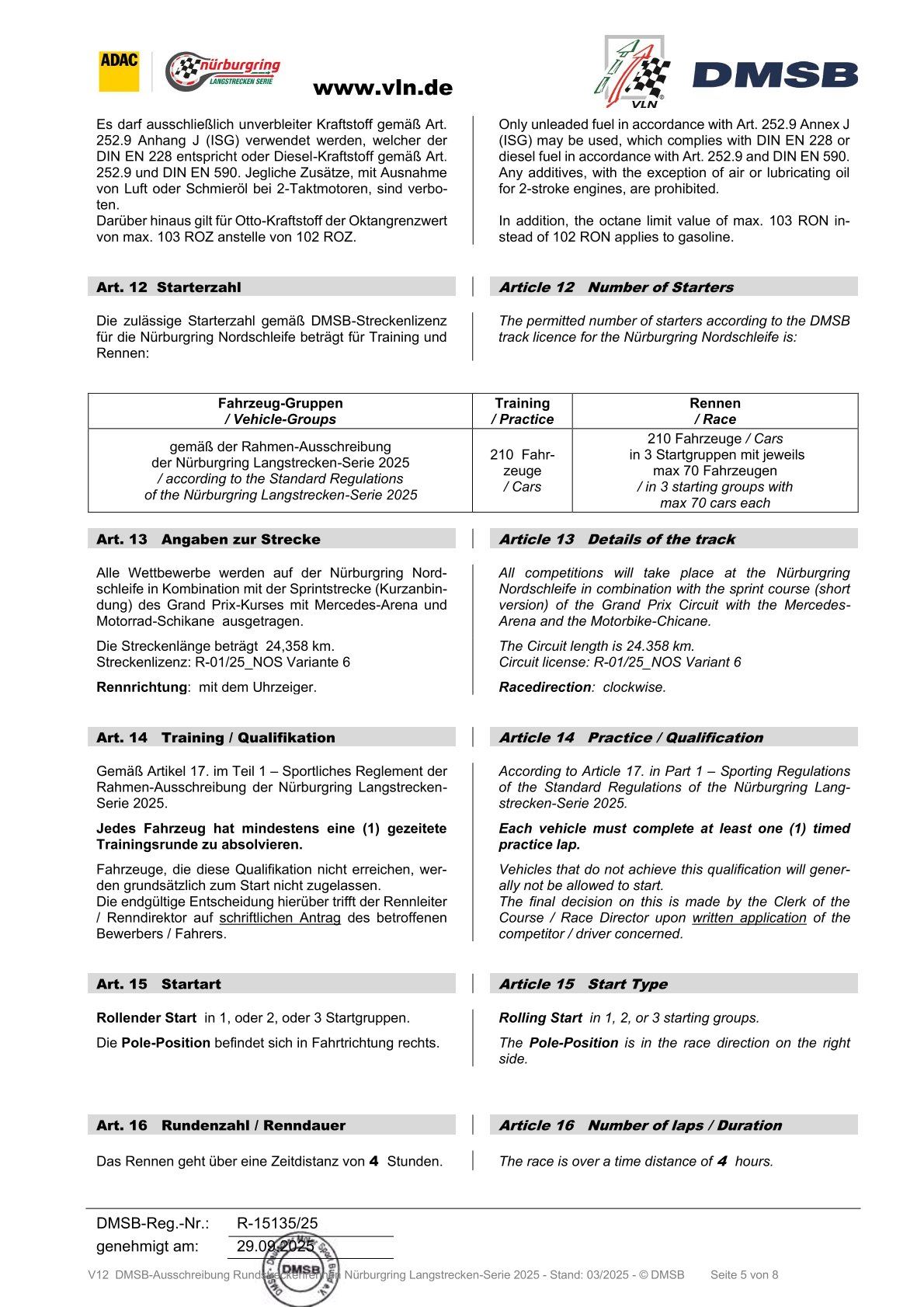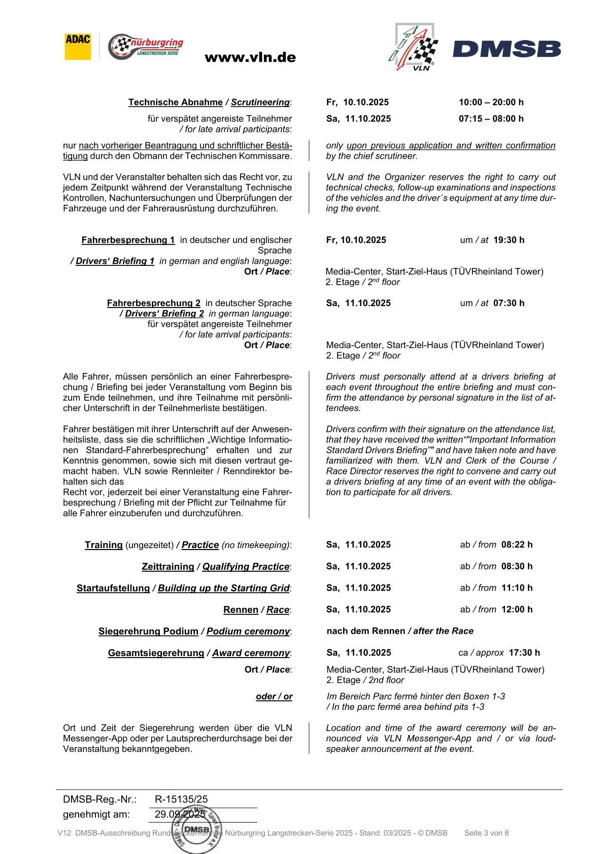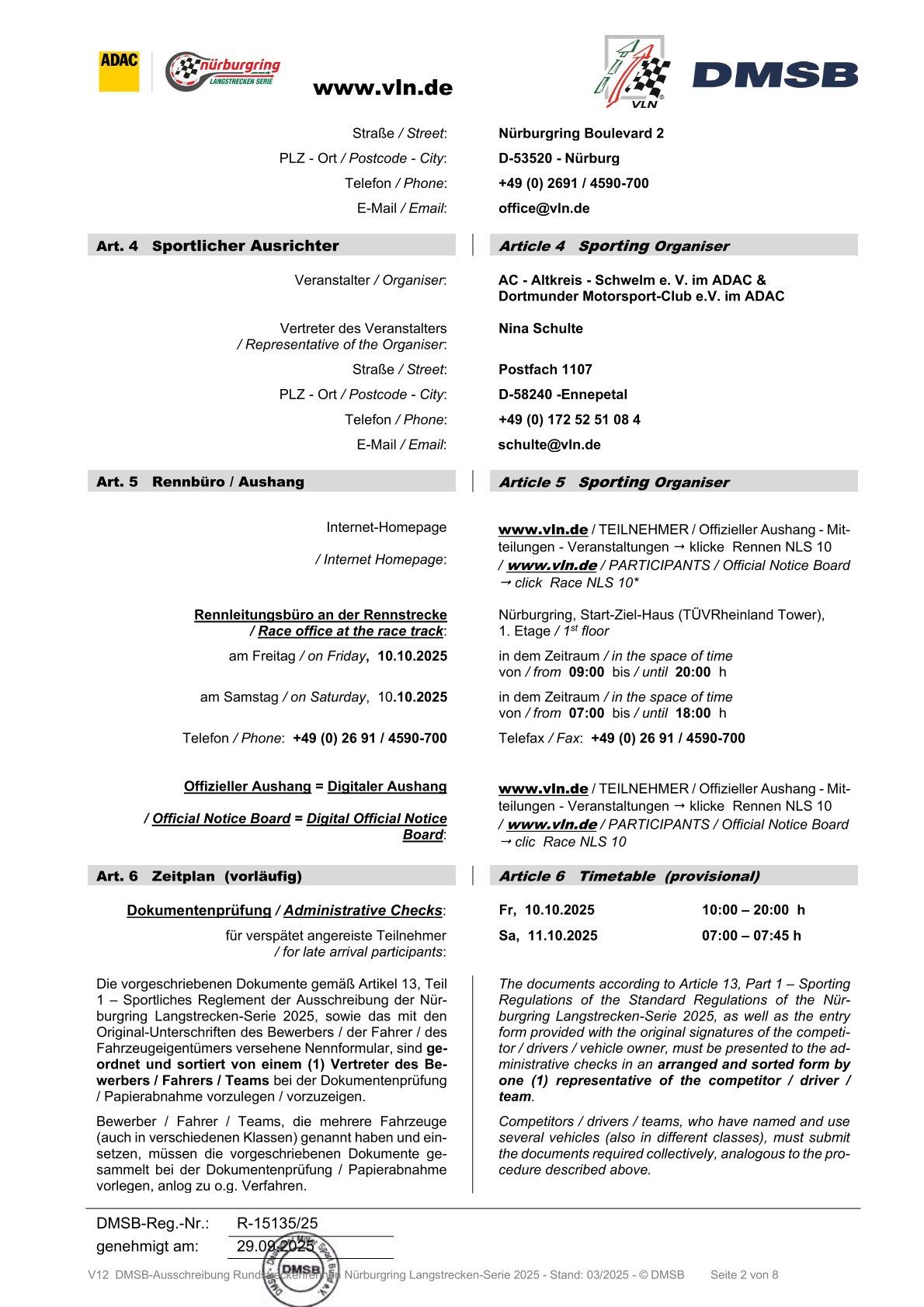 2025 Nürburgring Langstrecken-Serie NLS 10 kiegészítő szabályzat