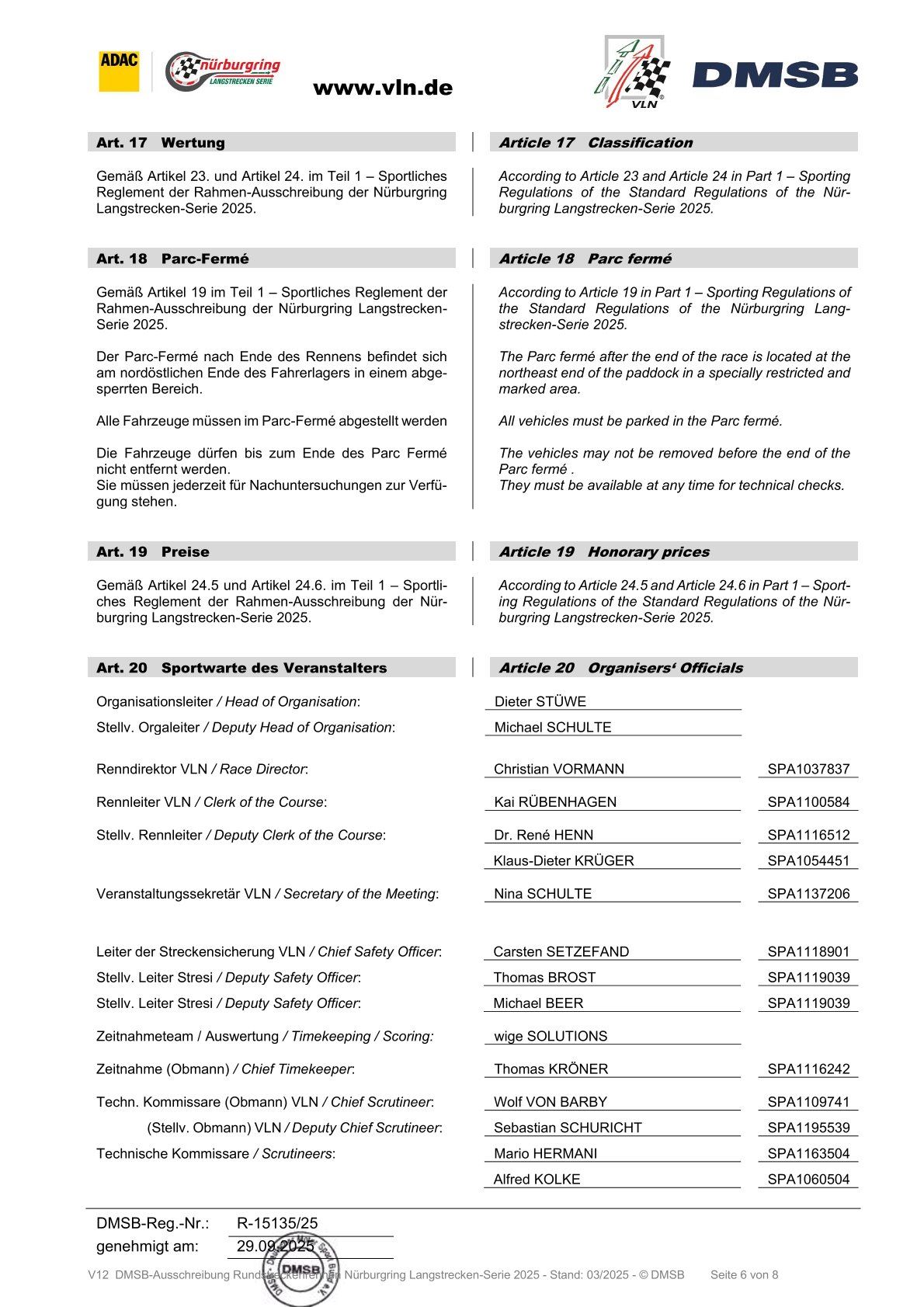 A hivatalos közleményeket digitálisan teszik közzé a VLN hirdetőtáblán a [www.vln.de] oldalon (http://www.vln.de).