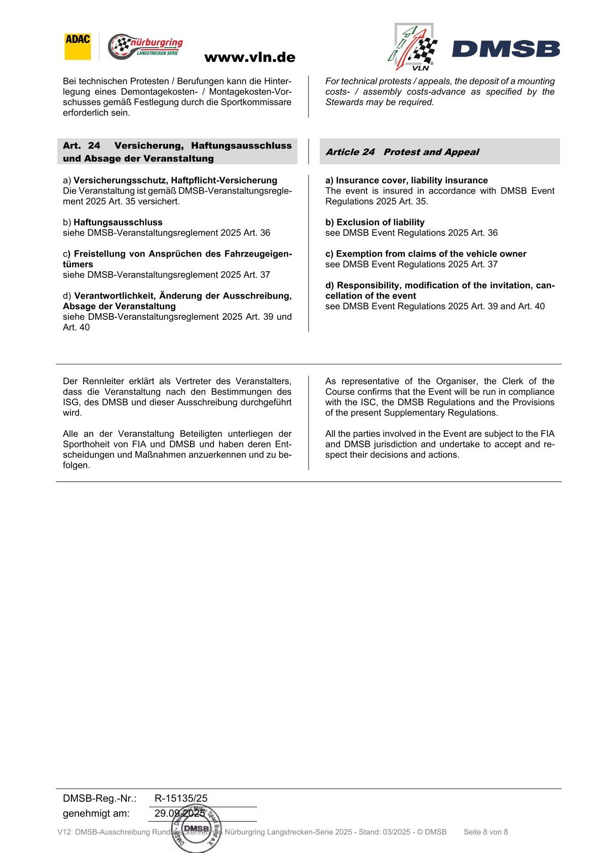 - Felelősség: A kizárások a DMSB versenyszabályzata (36–40. cikk) alapján érvényesek. Minden résztvevő az FIA és a DMSB hatáskörébe tartozik, és be kell tartania azok döntéseit.