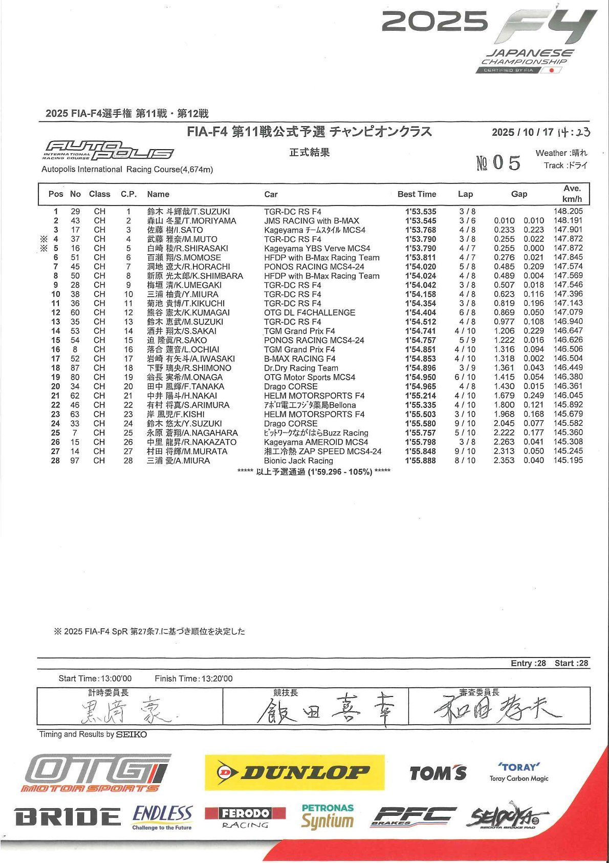 Hasil Kejuaraan F4 Jepang R11 & R12 2025