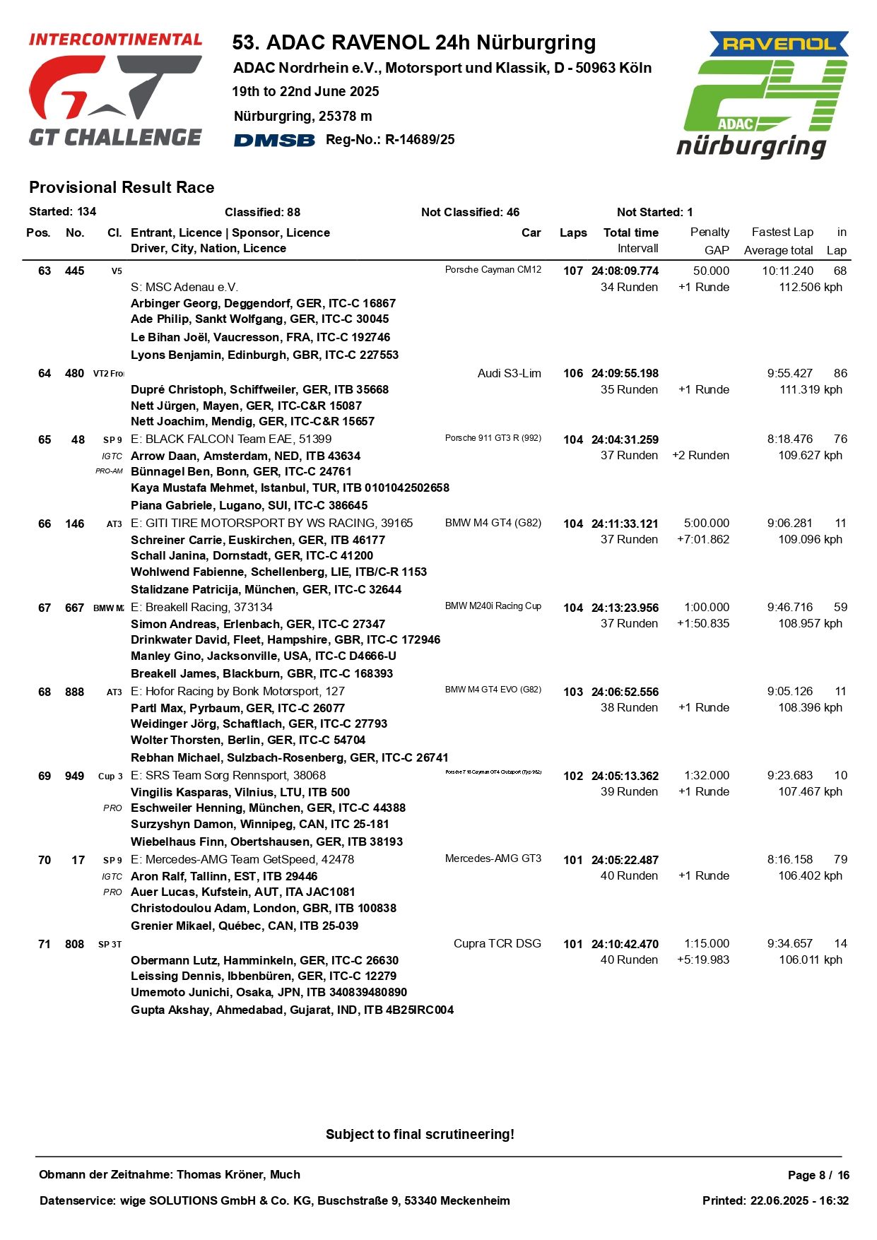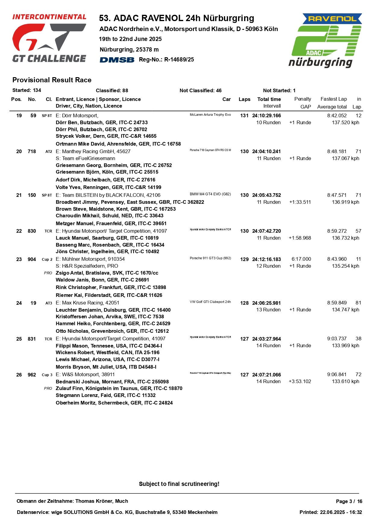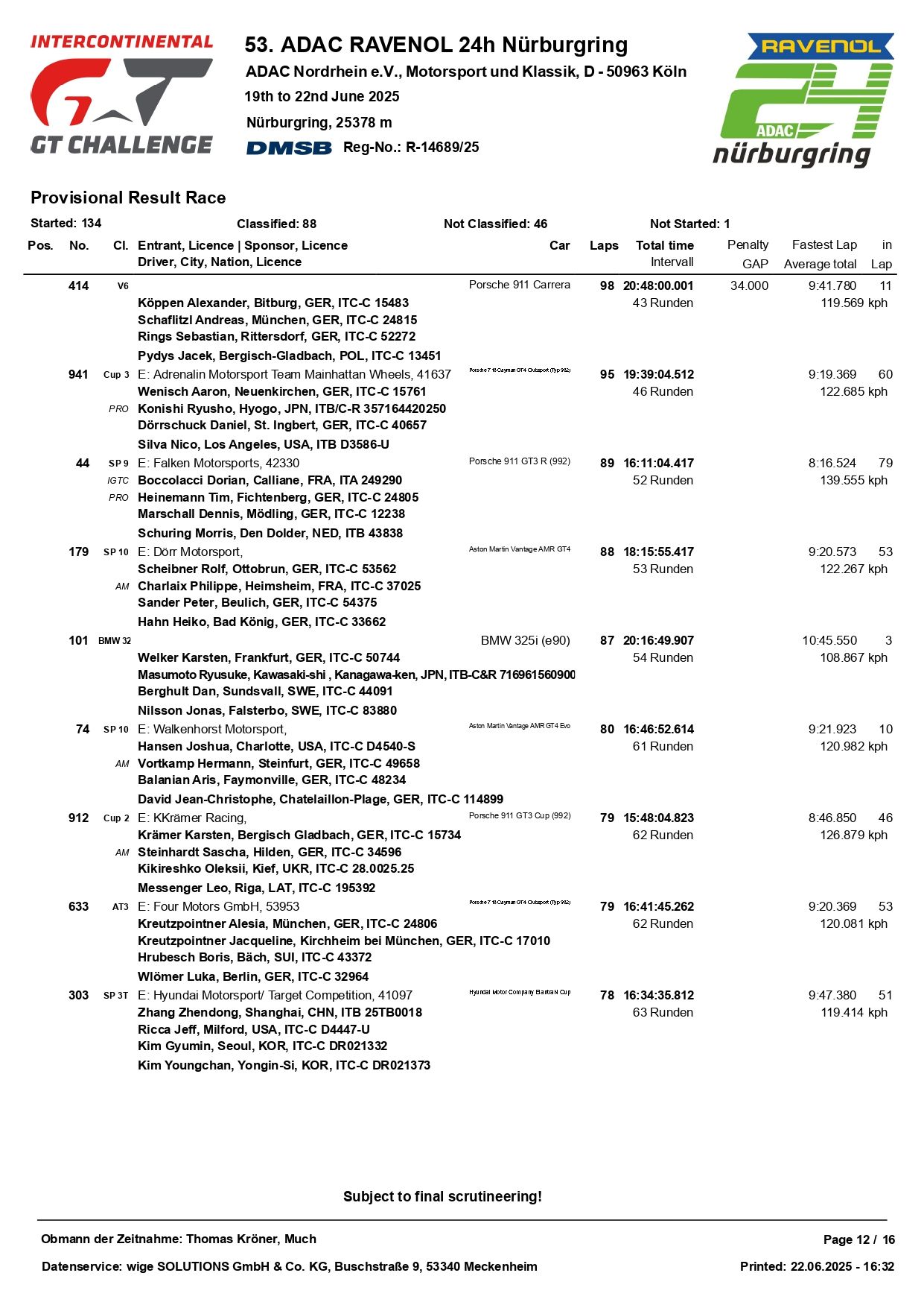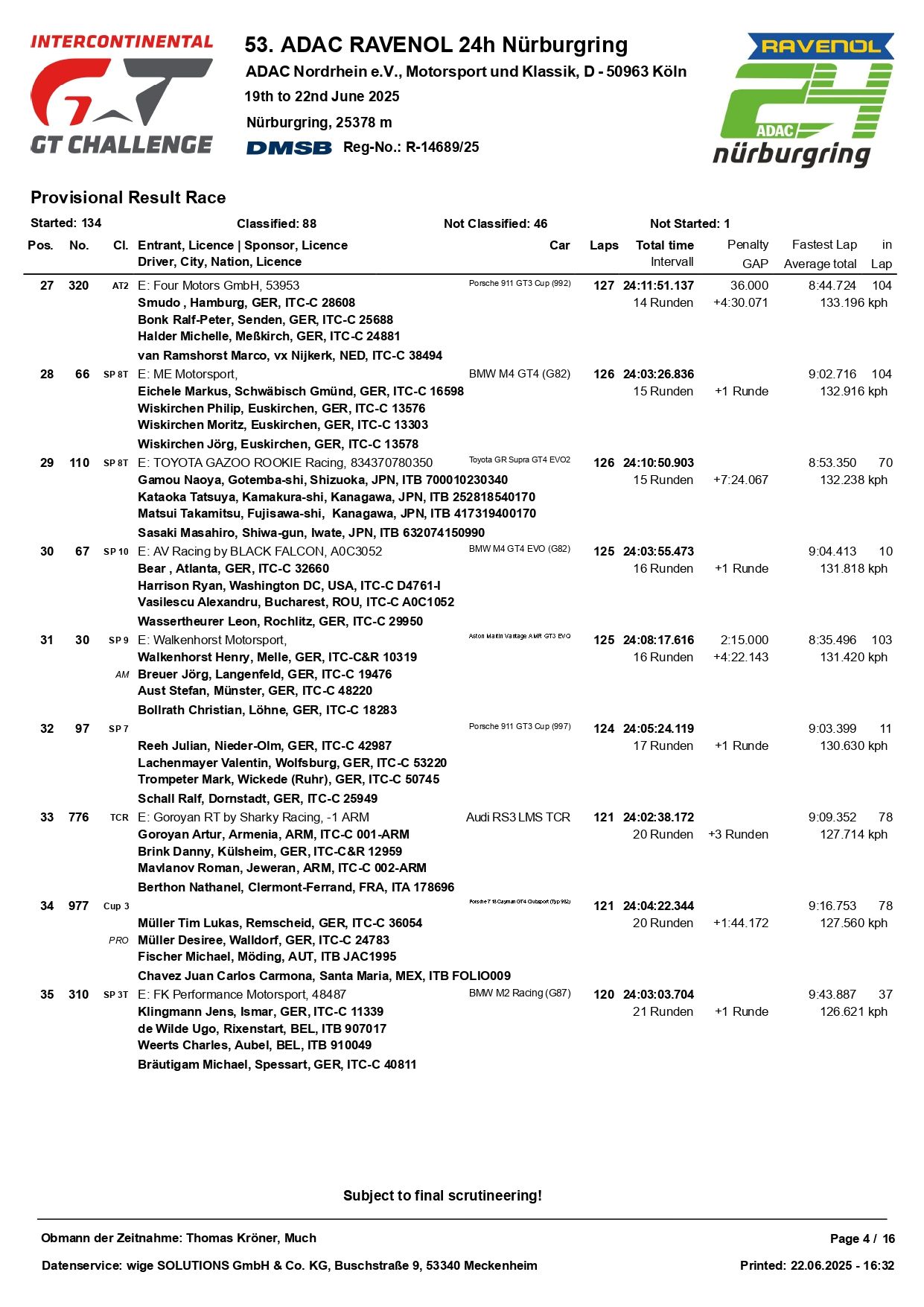 Risultati della 24 Ore del Nürburgring 2025, Round 2
