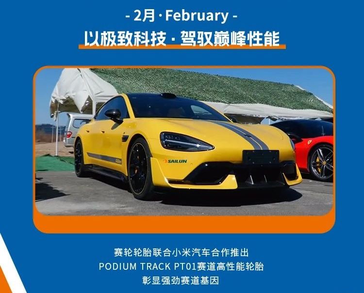 A febbraio, Sailun Tire ha collaborato con Xiaomi Auto per lanciare il pneumatico da pista ad alte prestazioni PODIUM TRACK P T01. Questa collaborazione, incentrata sulla tecnologia all'avanguardia, mette in mostra il forte DNA racing di Sailun, getta le basi per le future prestazioni in pista e dà il via al viaggio negli sport motoristici del 2025.