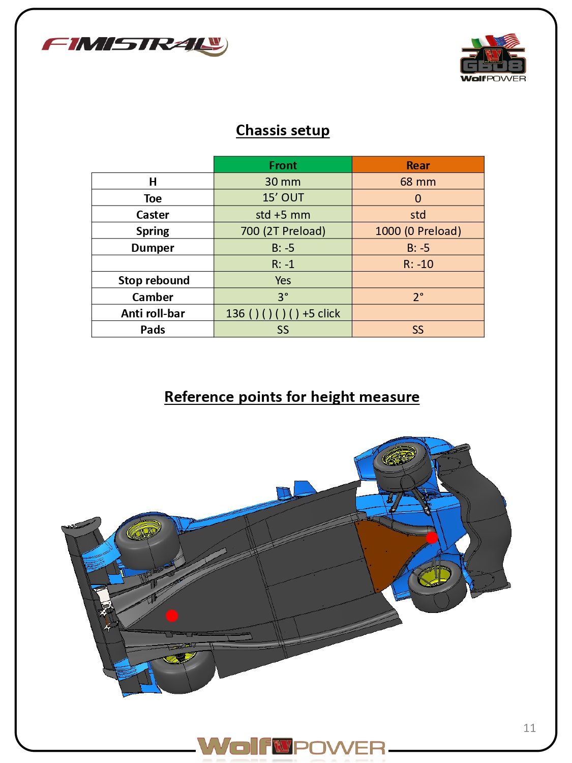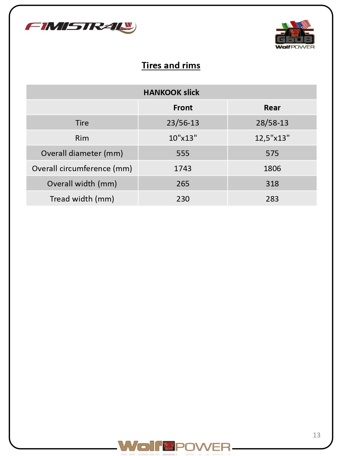 - Titik rujukan untuk pengukuran ketinggian dan tetapan persediaan untuk tayar licin dan tayar hujan, termasuk tekanan dan pelarasan tayar.