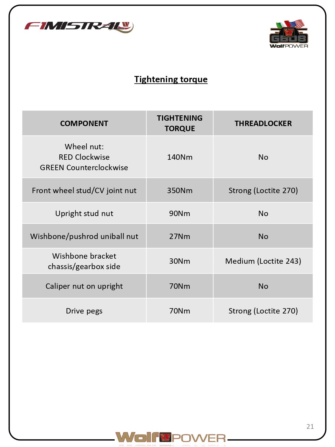 - Spesifikasi tork untuk komponen seperti nat roda, nat stud roda depan/CV joint, nat stud tegak dan banyak lagi.