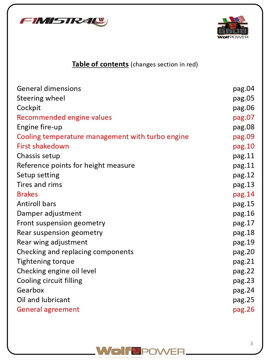 - Ujian selepas perlumbaan/harian dan pemeriksaan tahunan, termasuk bolt casis, pembersihan penapis udara, pembersihan udara intercooler dan pendarahan brek.
