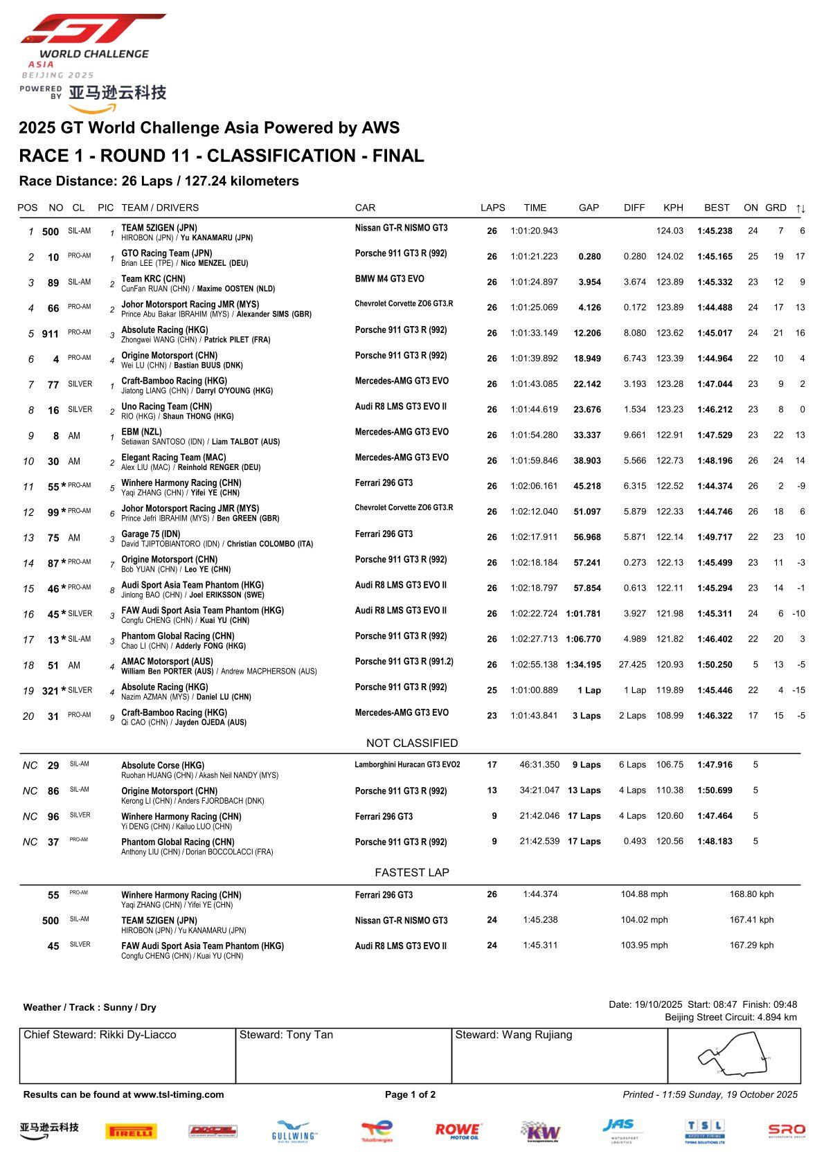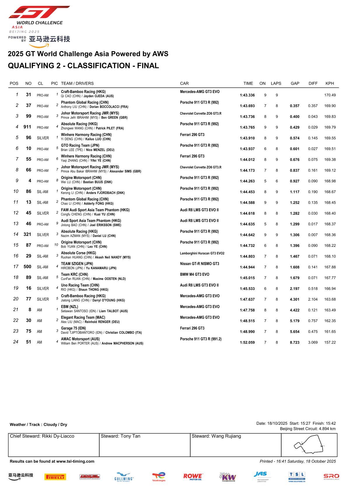 2025 GTWC Asia - Resultater for GT World Challenge Asia runde 11 og 12