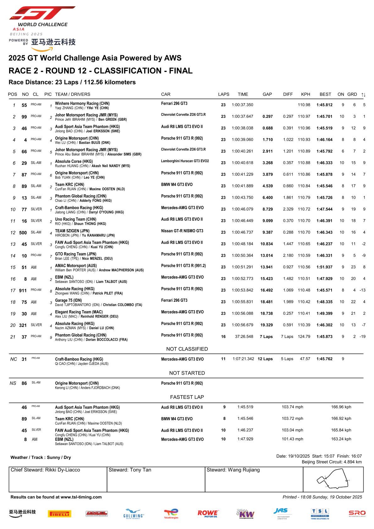 Løpsresultater Kina Beijing Street Circuit 20 oktober