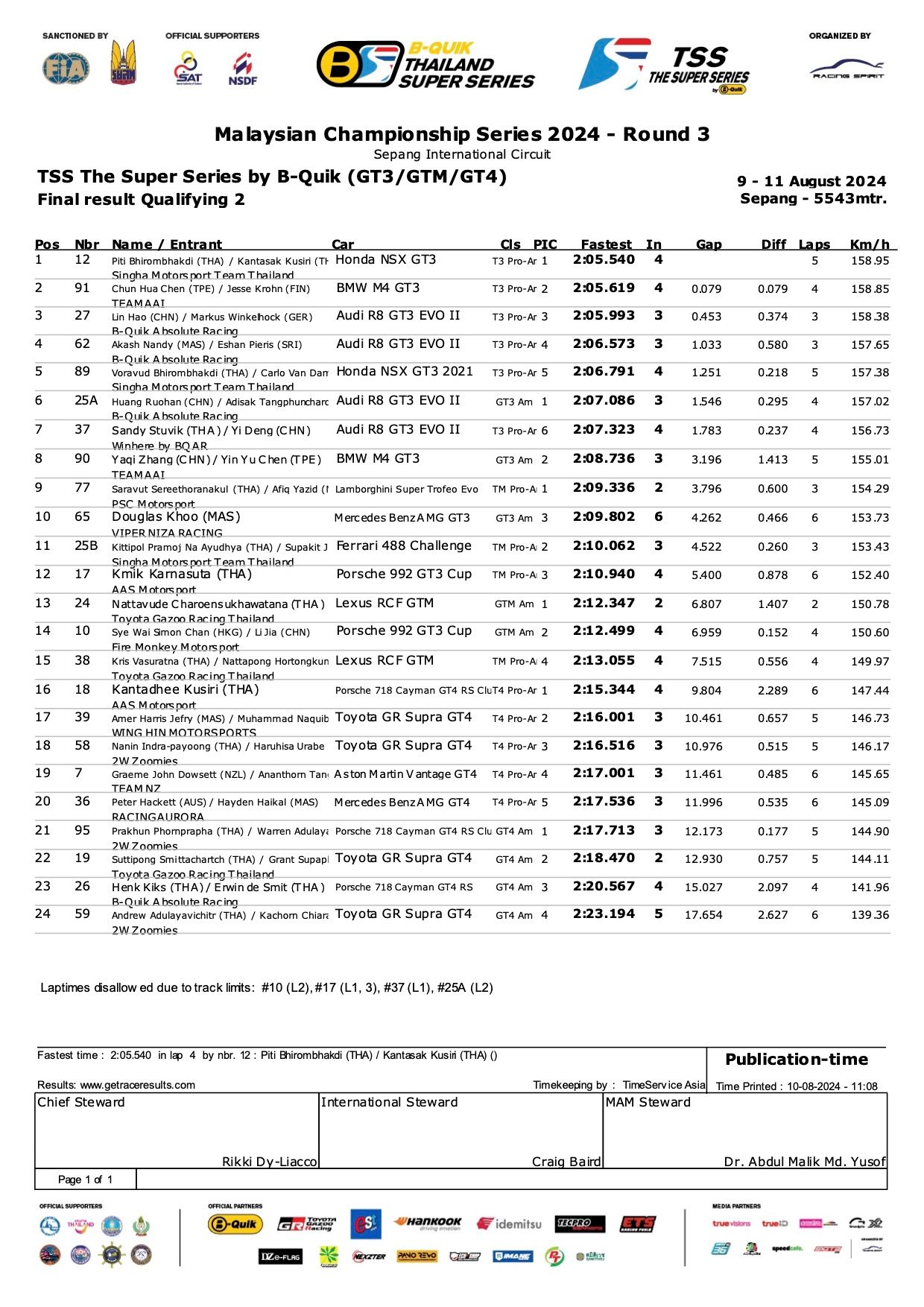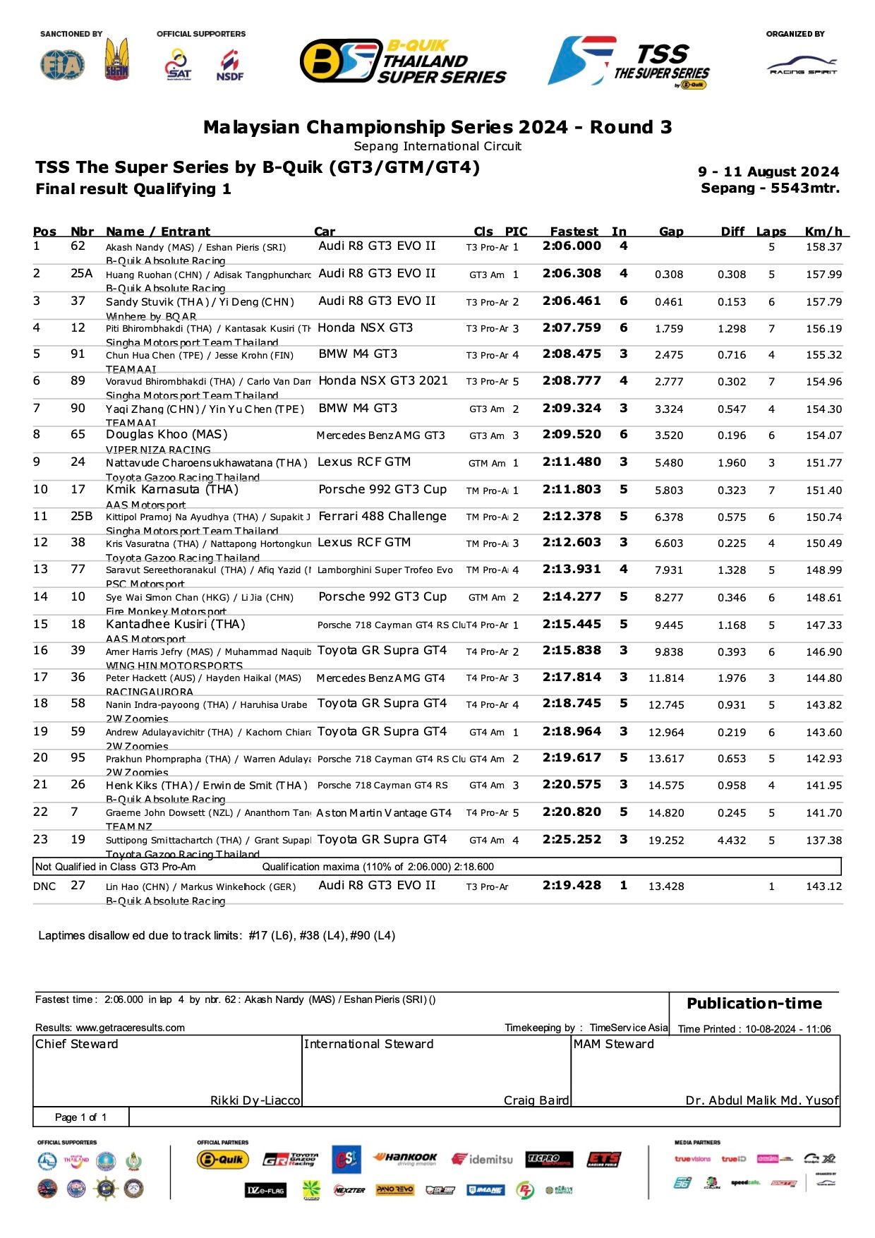 Malaysian Championship Series 2024 – Runde 3 TSS The Super Series von B-Quik (GT3/GTM/GT4) Enderg...