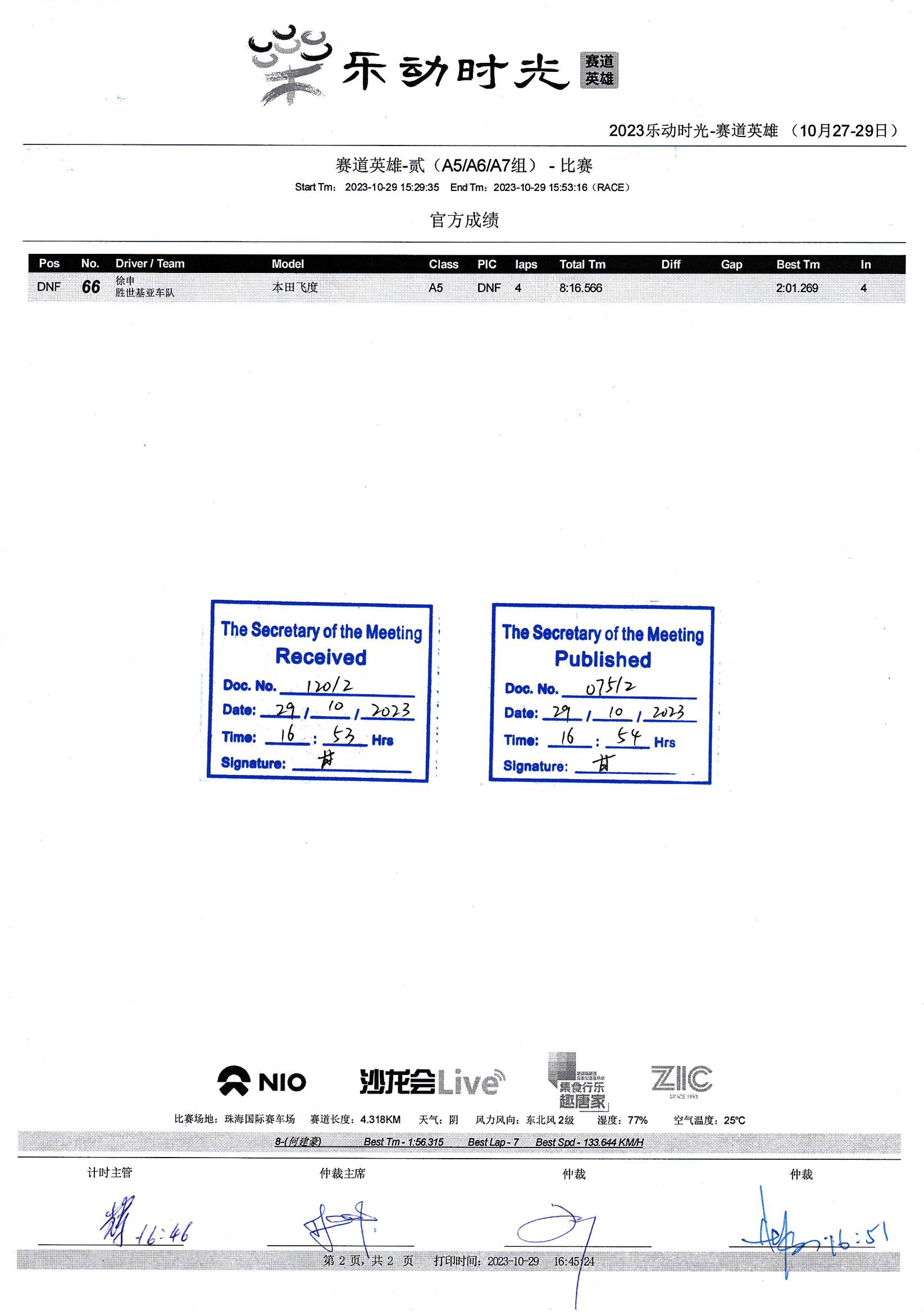 Rezultatele cursei China Circuitul Internațional Zhuhai 30 octombrie