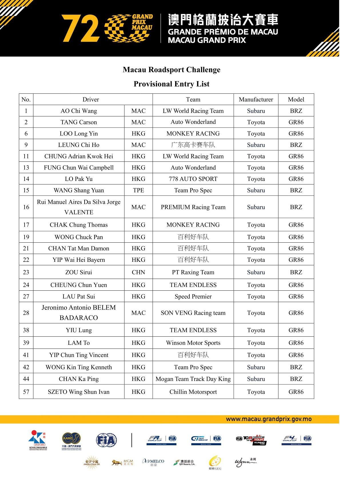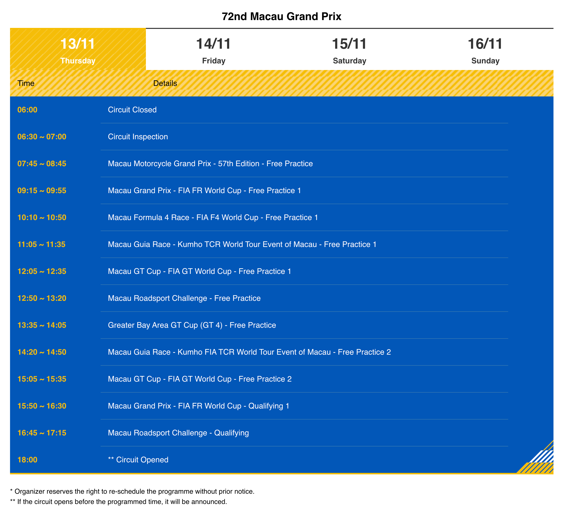 Первая гонка Гран-при Чжухая стартовала в субботу в 14:30. Непредсказуемая погода стала серьёзным испытанием для всех участников. Внезапный ливень в середине гонки временно прервал её. Ли Цзяси, занявший поул-позицию, провёл гонку исключительно хорошо, сохраняя стабильное лидерство и завоевав поул-позицию, что принесло команде Top Racing победу в первом этапе гонки в Чжухае.