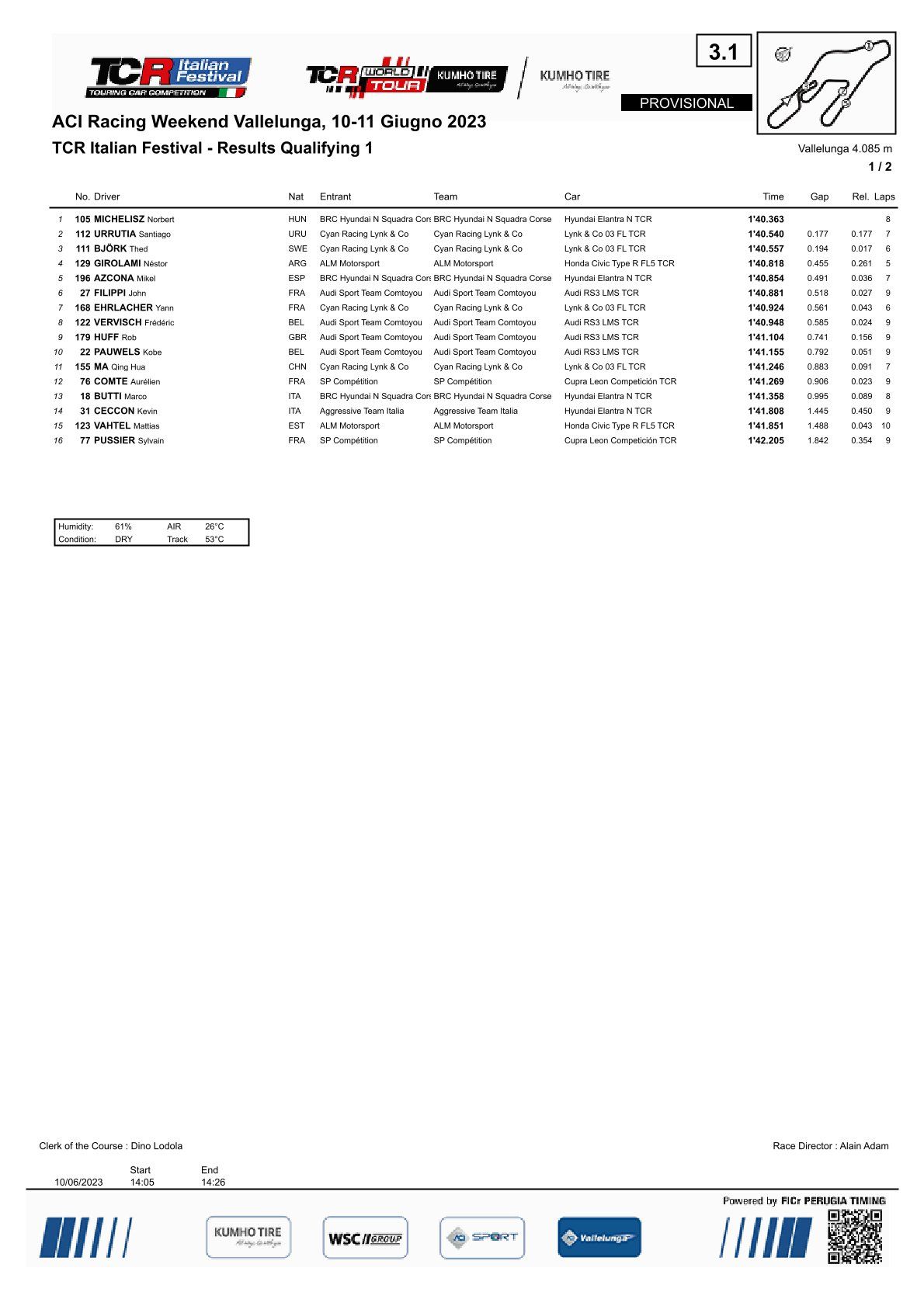 | Kategori | Varvtid | Toppfart | Kurvtagningshastighet |