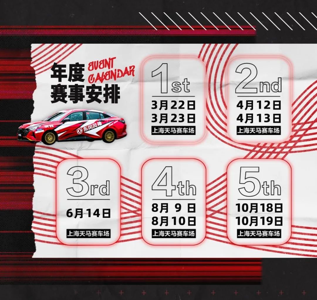 มีรายงานว่างานนี้จะมีขึ้น 5 จุดตลอดทั้งปี โดยจัดขึ้นที่ Shanghai Tianma Circuit ทั้งหมด การแข่งขันรอบแรกจะจัดขึ้นในวันที่ 22-23 มีนาคม ส่วนการแข่งขันรอบต่อไปจะจัดขึ้นในวันที่ 12-13 เมษายน 14 มิถุนายน 9-10 สิงหาคม และ 18-19 ตุลาคม