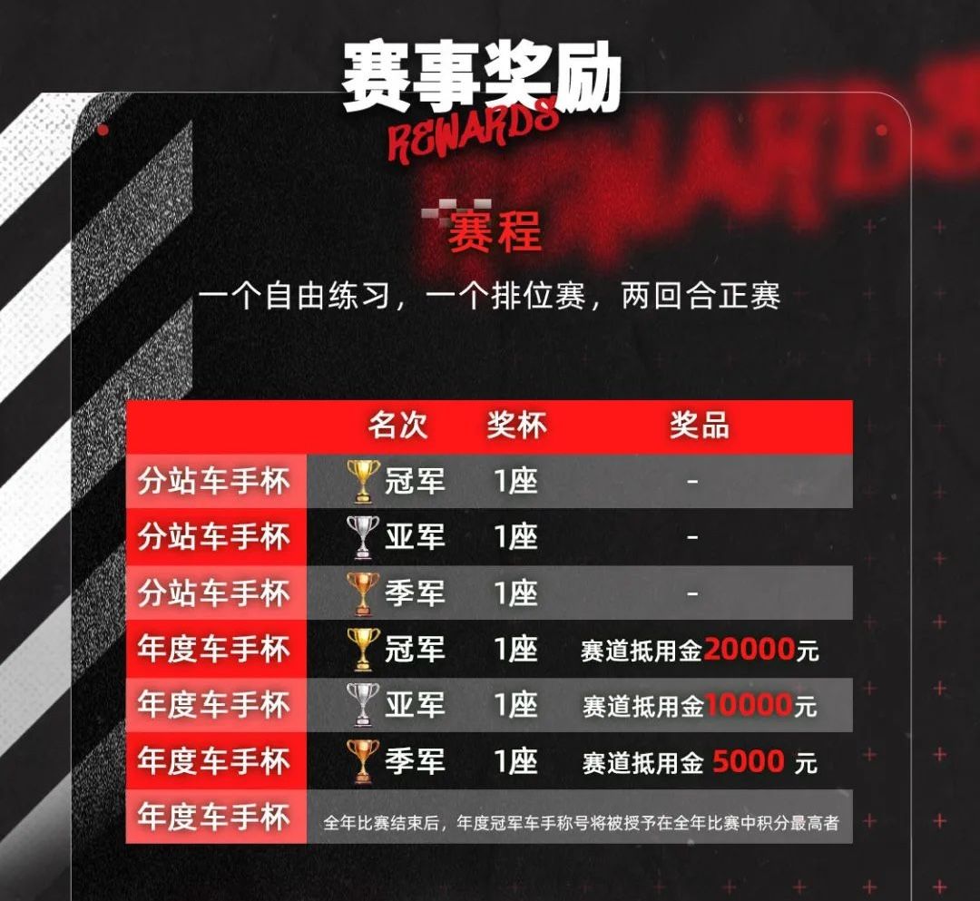 งานนี้มอบรางวัลมากมายให้กับผู้ชนะการแข่งขันระดับแชมเปี้ยน รองชนะเลิศ และอันดับที่ 3 ในแต่ละการแข่งขันจะได้รับถ้วยรางวัล ผู้ชนะการแข่งขันชิงถ้วยรางวัลประจำปีจะได้รับเครดิตการแข่งขัน 20,000 หยวน รองชนะเลิศจะได้รับ 10,000 หยวน และอันดับที่ 3 จะได้รับ 5,000 หยวน ผู้ที่ได้คะแนนสูงสุดในการแข่งขันตลอดทั้งปีจะได้รับตำแหน่งแชมเปี้ยนประจำปี