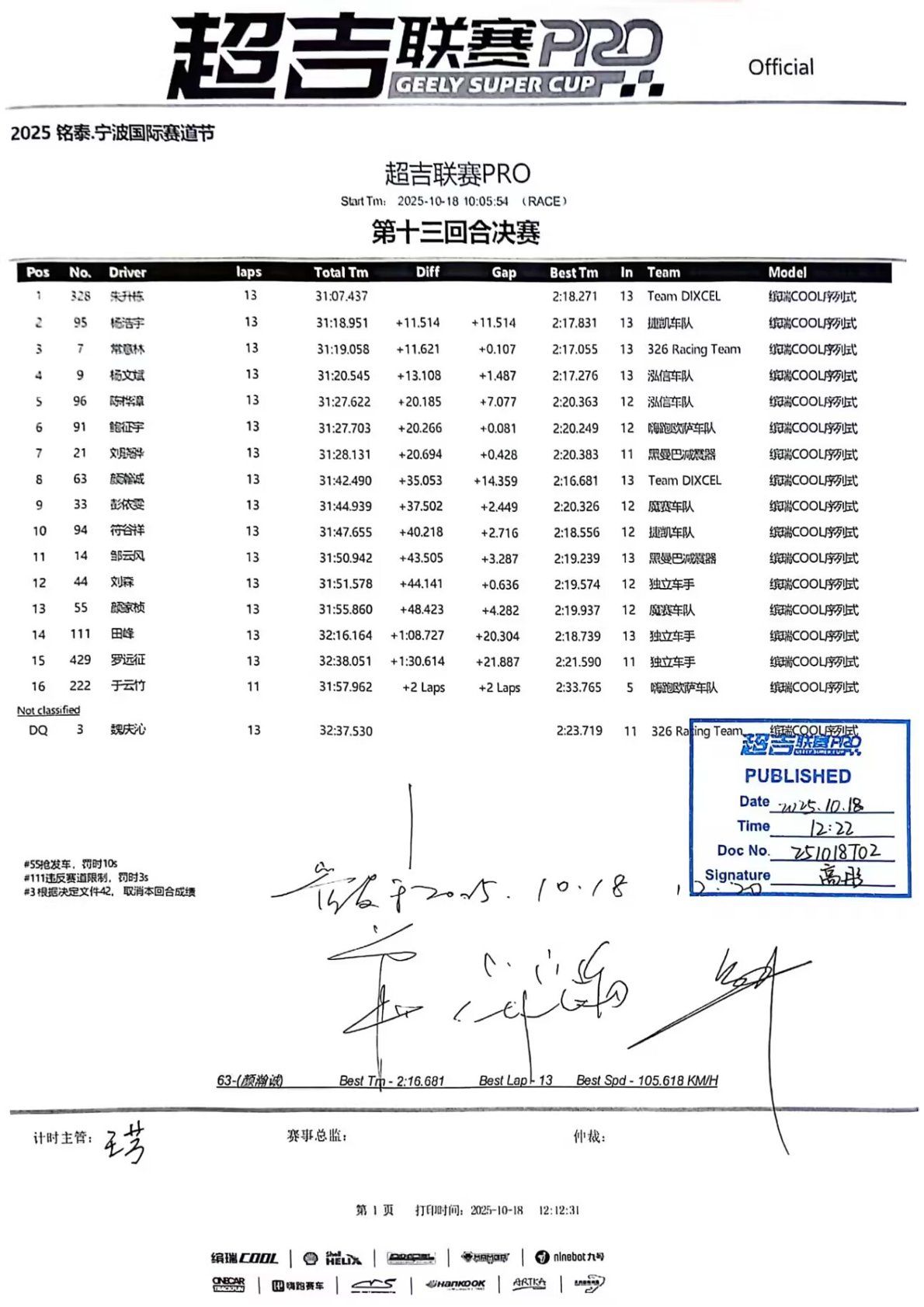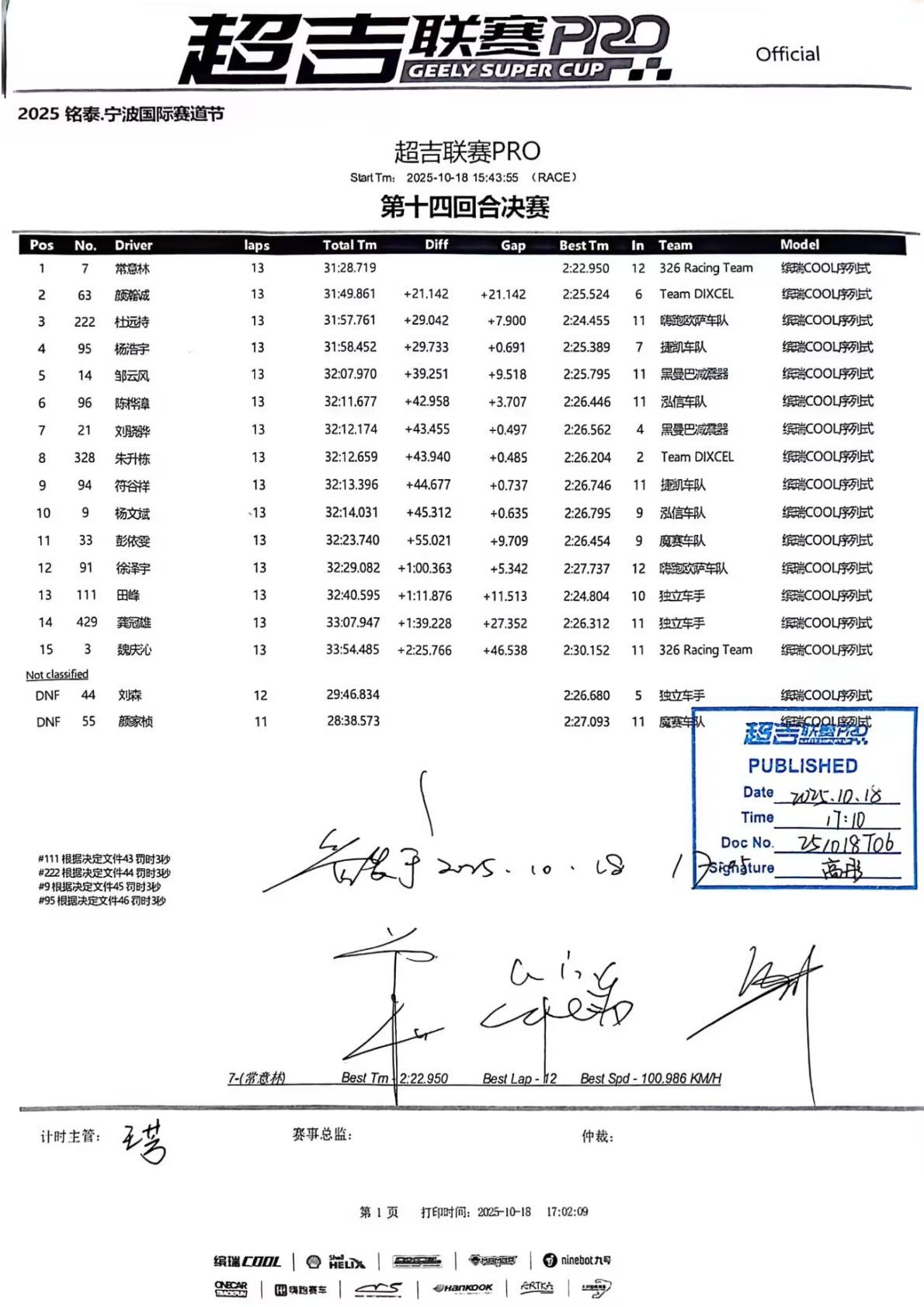 2025 Mga Resulta ng Geely Super Cup Pro R13/R14/R15