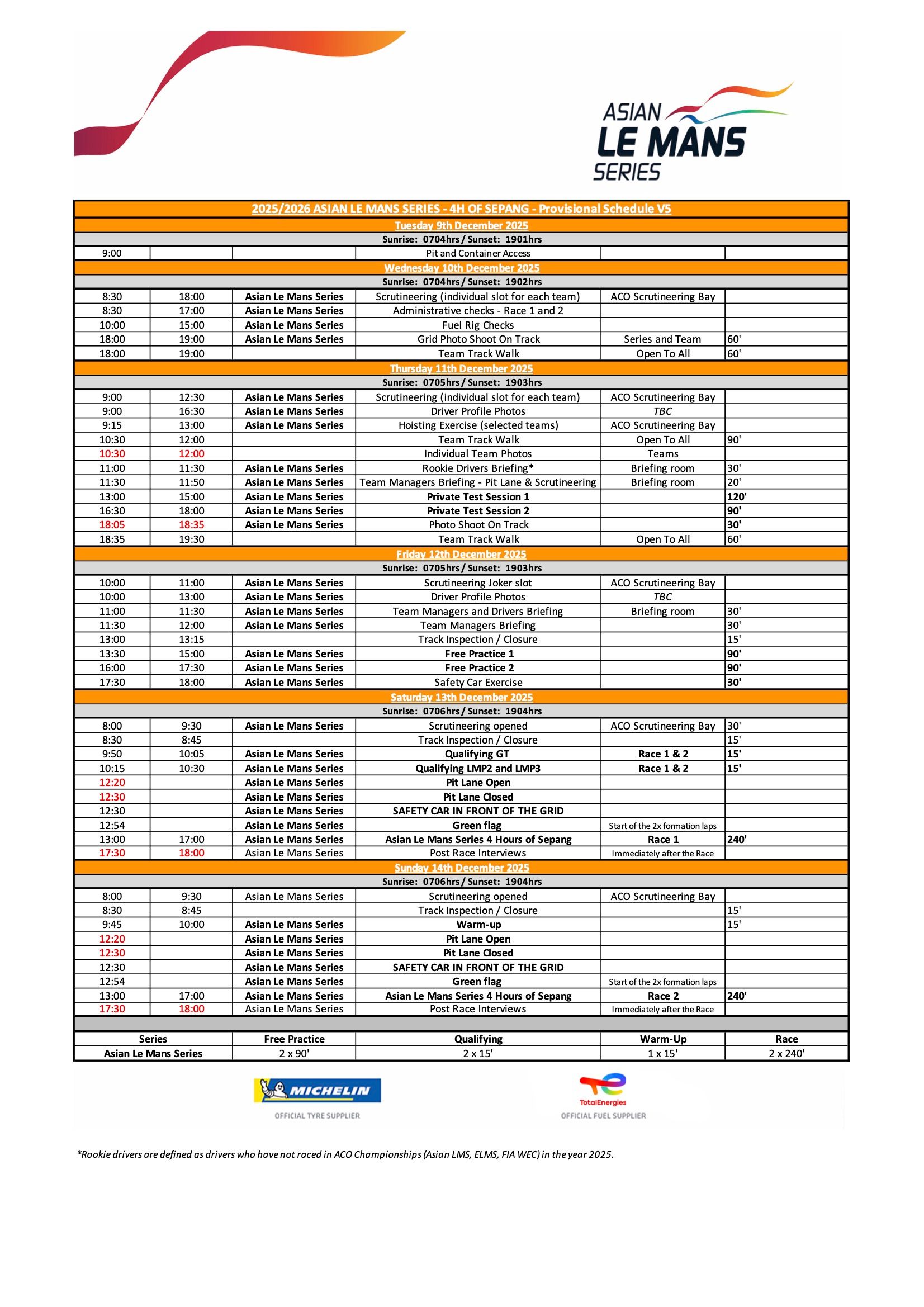 2025-2026 Asya Le Mans Serisi, yarış kontrol prosedürlerini birleştirmek, güvenliği artırmak ve LMP2, LMP3 ve GT3 kategorilerindeki takımlar için daha fazla şeffaflık sağlamak üzere tasarlanmış, geliştirilmiş bir dizi sportif açıklama sunuyor.
