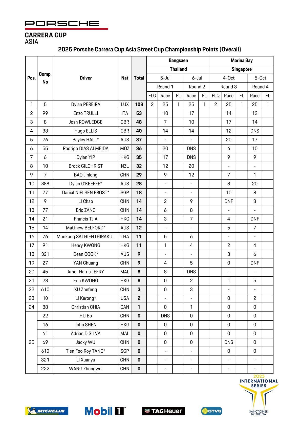 Kết quả Giải đua xe Porsche Carrera Cup Châu Á R13/R14 năm 2025 của PCCA