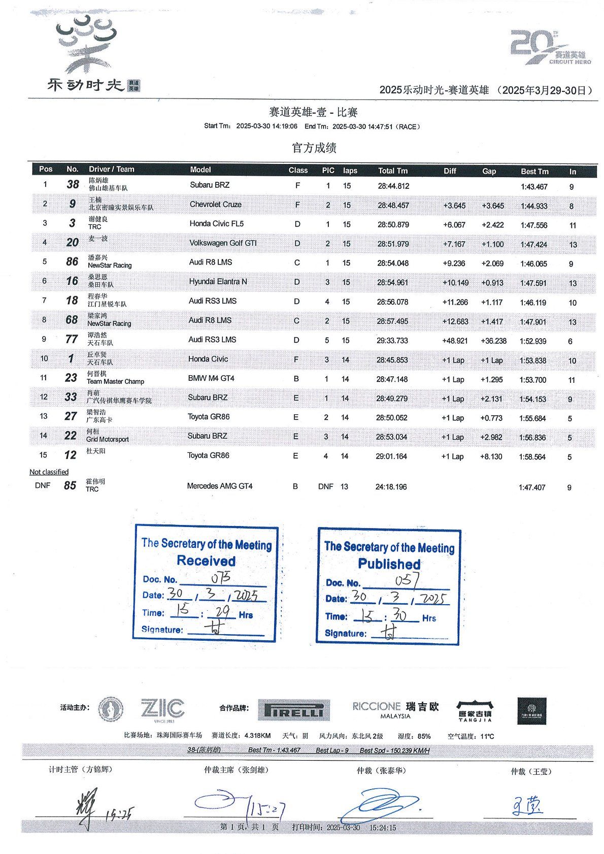 Kết quả cuộc đua Trung Quốc Đường đua quốc tế Chu Hải 31 tháng 3